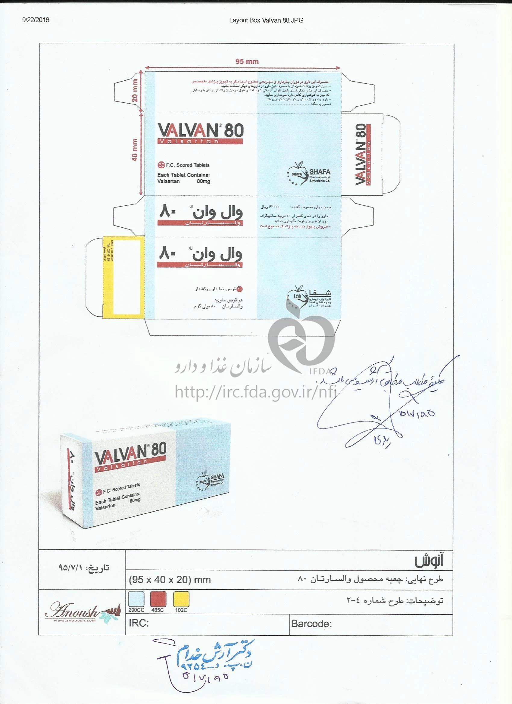 دکترها والسارتان - شفا قرص خوراکی 80 mg