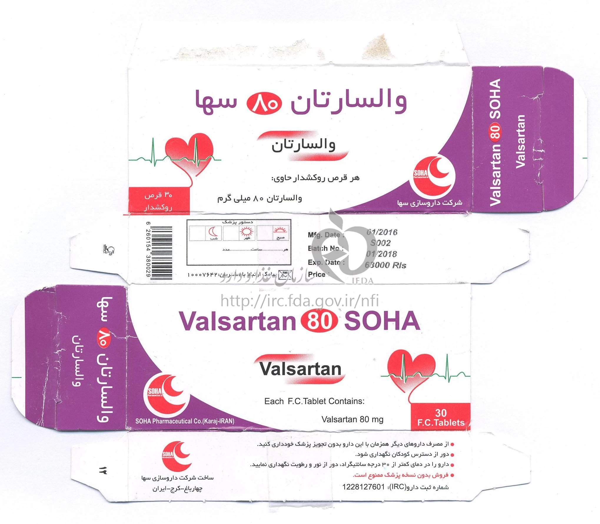 دکترها والسارتان سها قرص خوراکی 80 mg