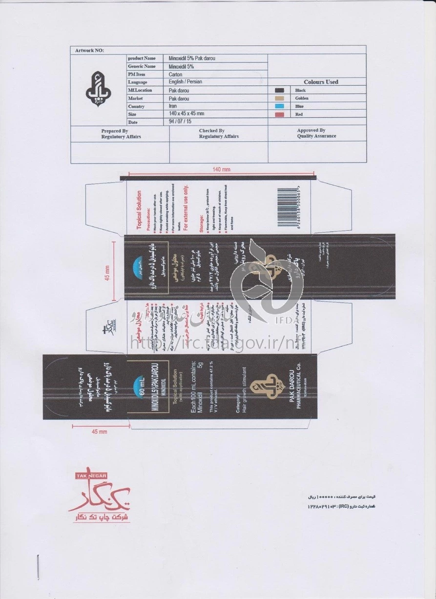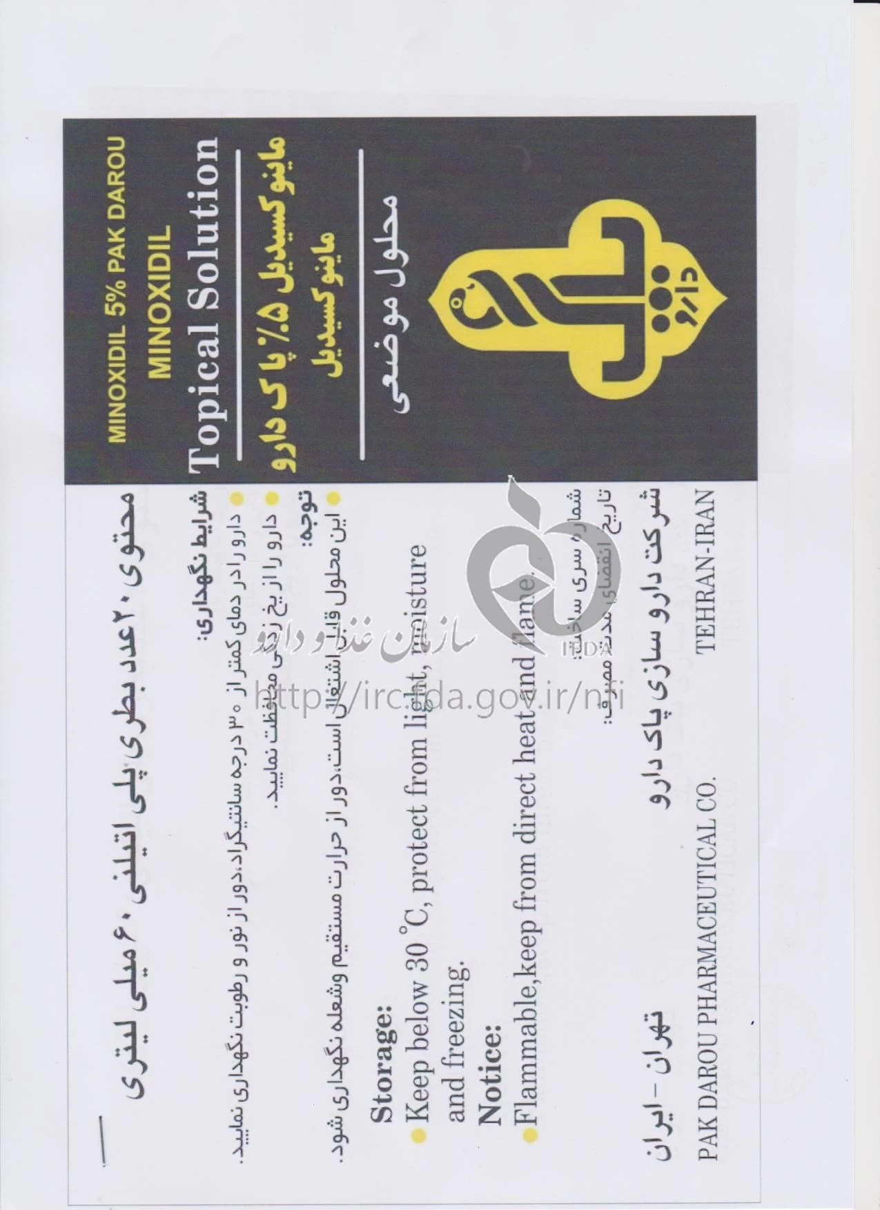ماینوکسیدیل پاک دارو محلول موضعی 50 mg/1mL 60MILLILITER