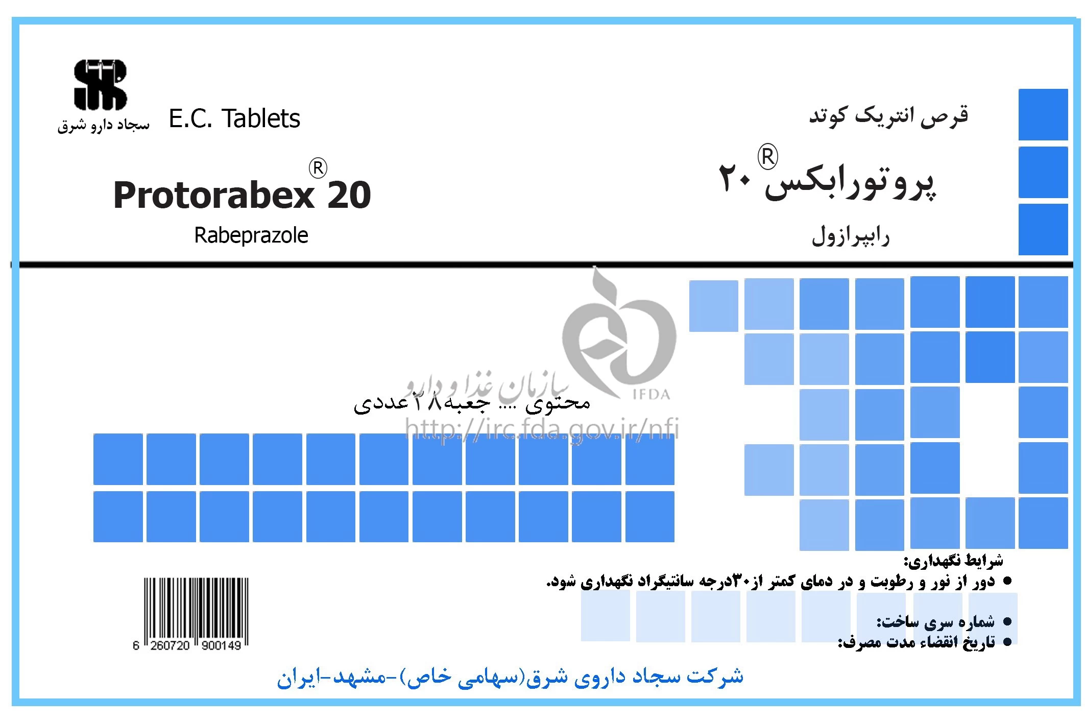 پروتورابکس قرص انتریک کوتد خوراکی 20 mg