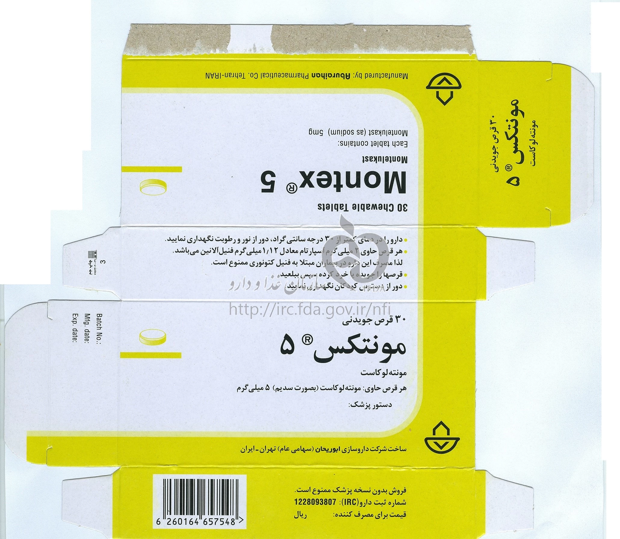 مونتکس 5 میلی گرم قرص جویدنی خوراکی 5 mg
