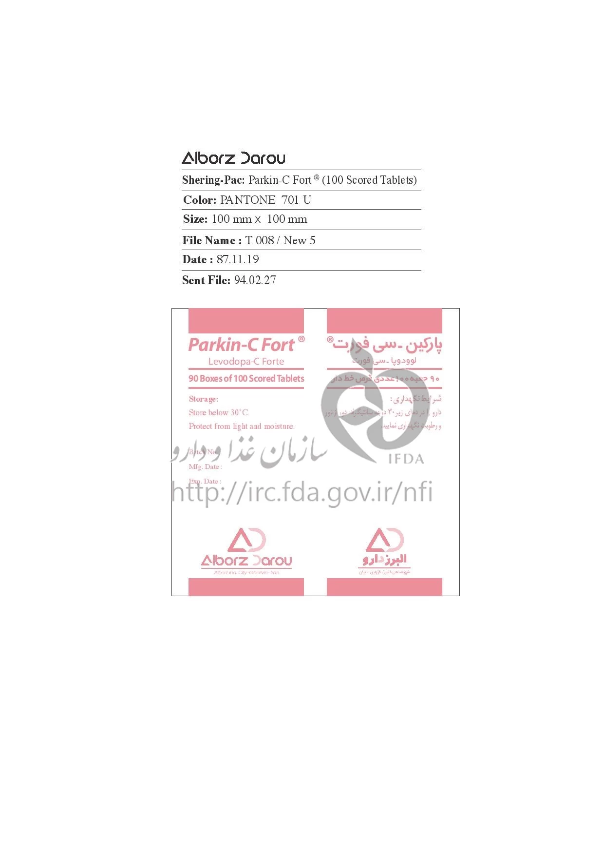 پارکین - سی فورت قرص خوراکی 250 mg/25 mg