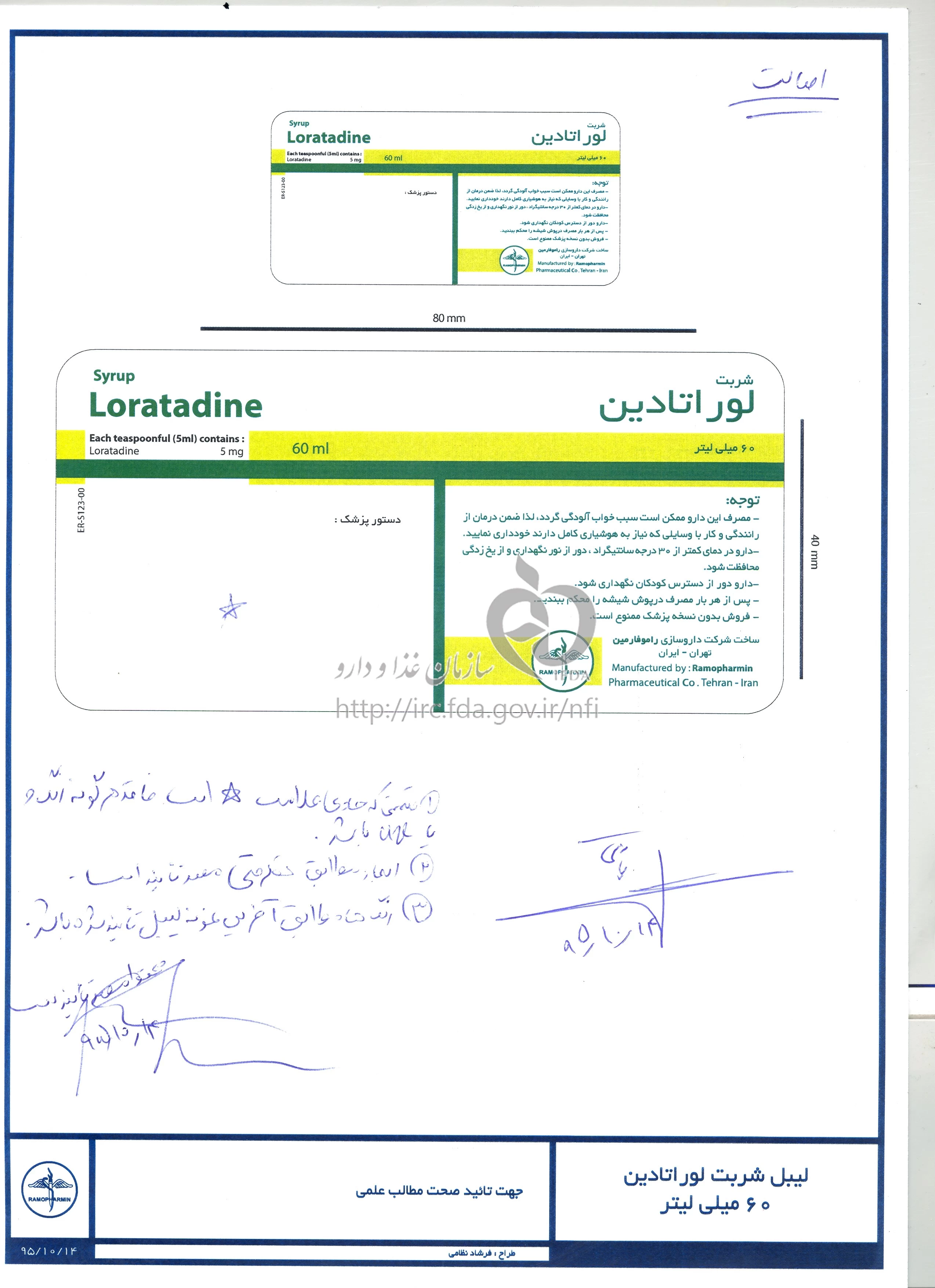 لوراتادین شربت خوراکی 5 mg/5 mL 60MILLILITER