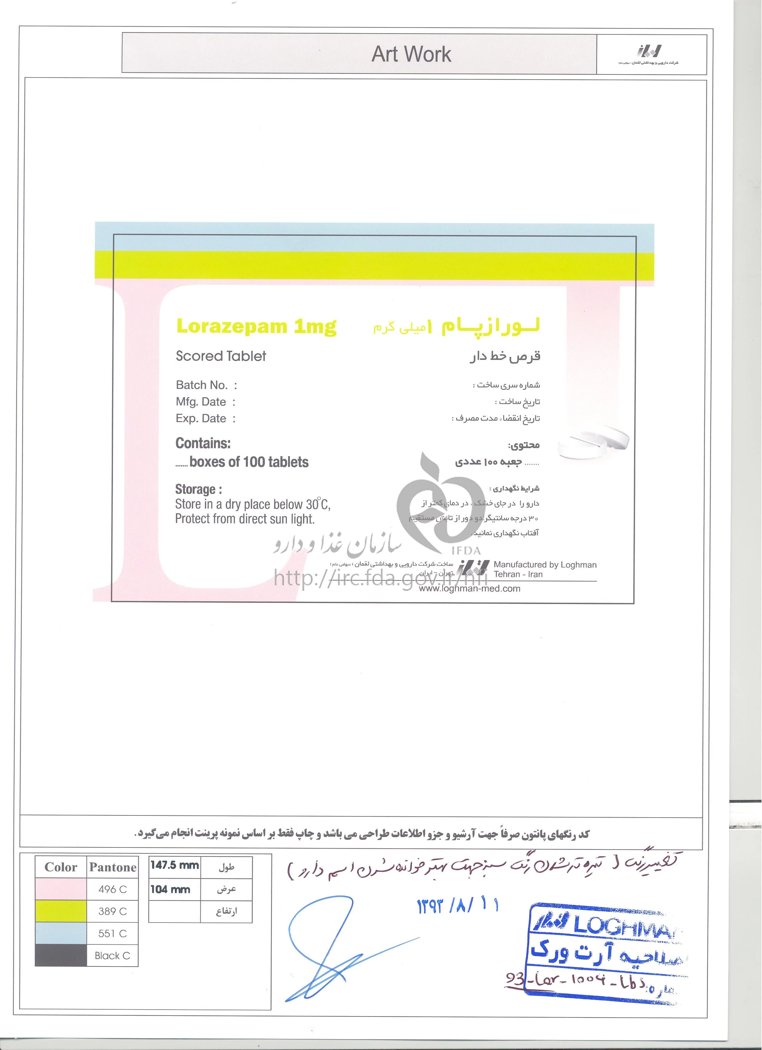 تداخل های دارویی لورازپام قرص خوراکی 1 mg