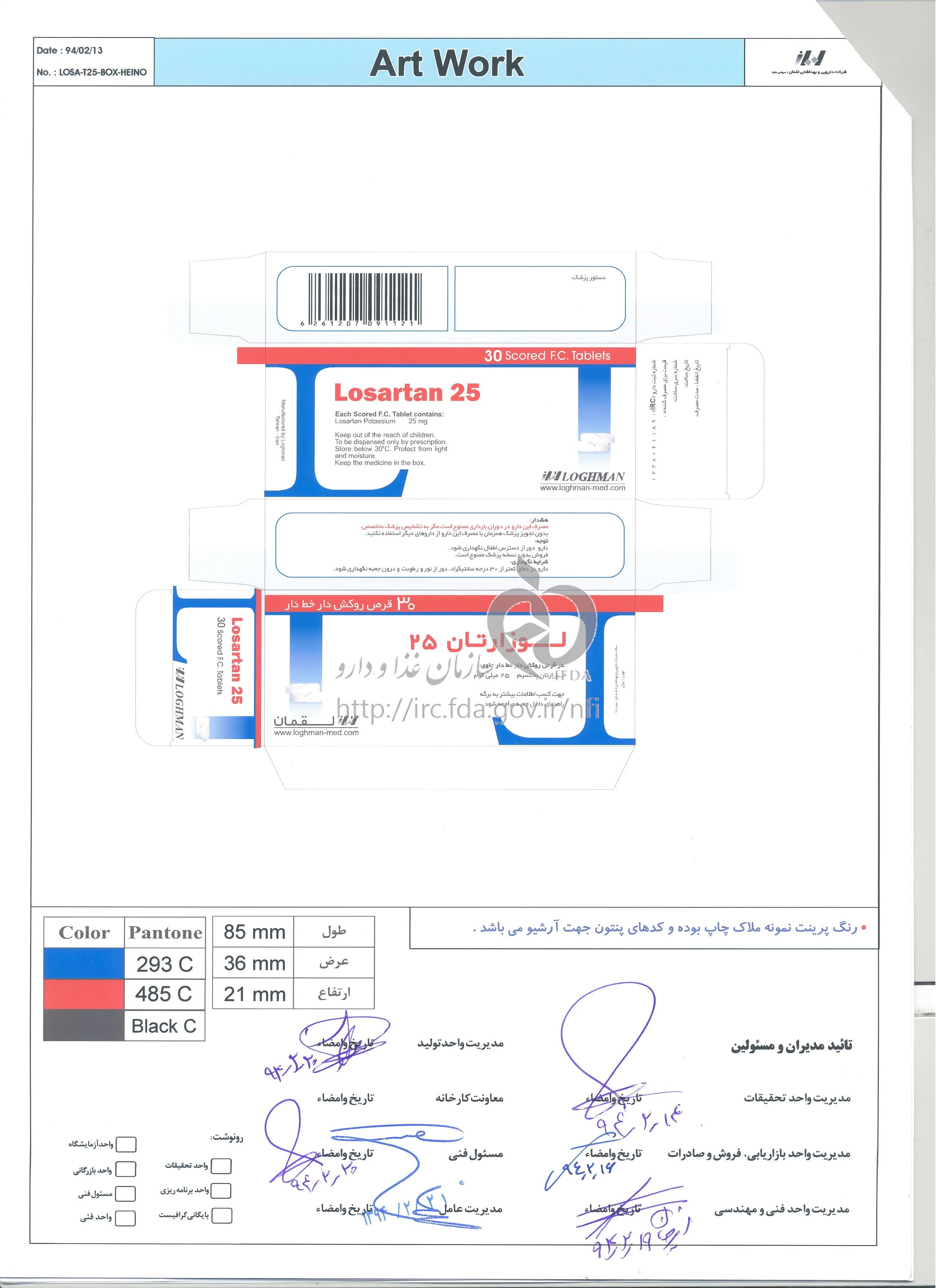 لوزارتان پتاسیم قرص خوراکی 25 mg