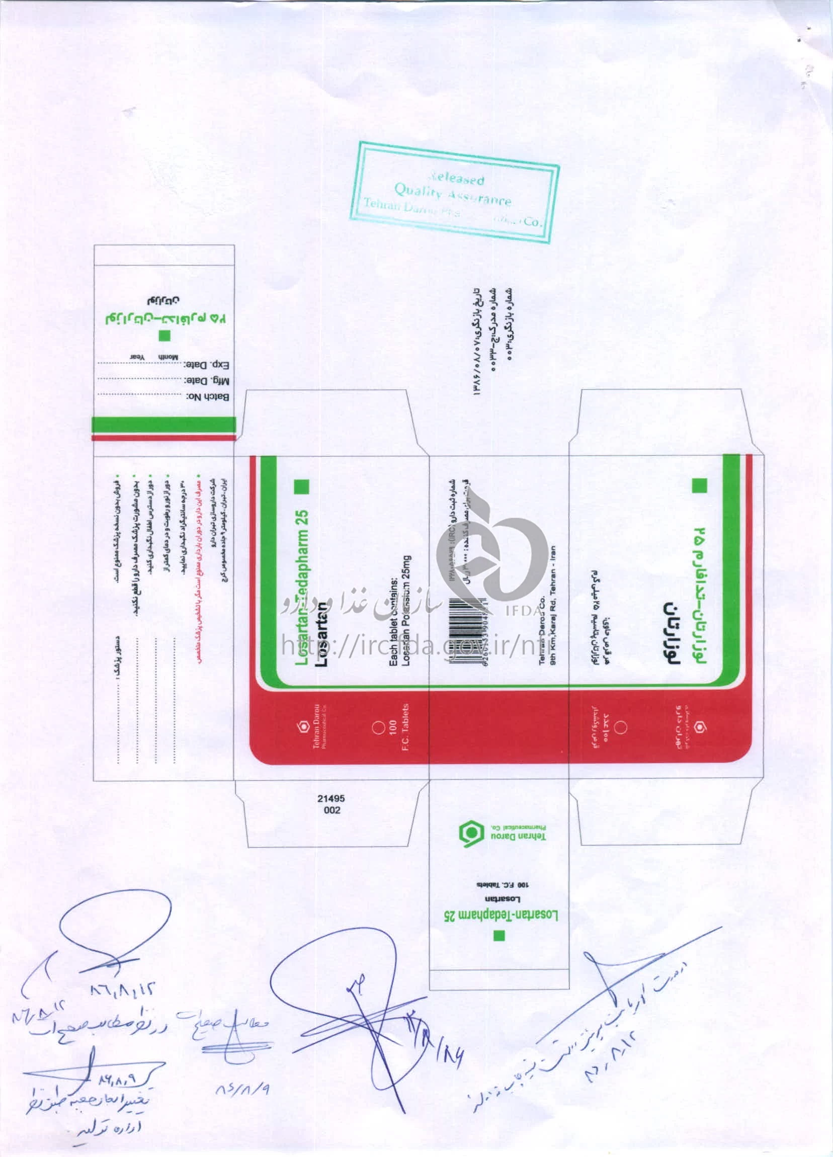 لوزارتان - تدافارم قرص خوراکی 25 mg