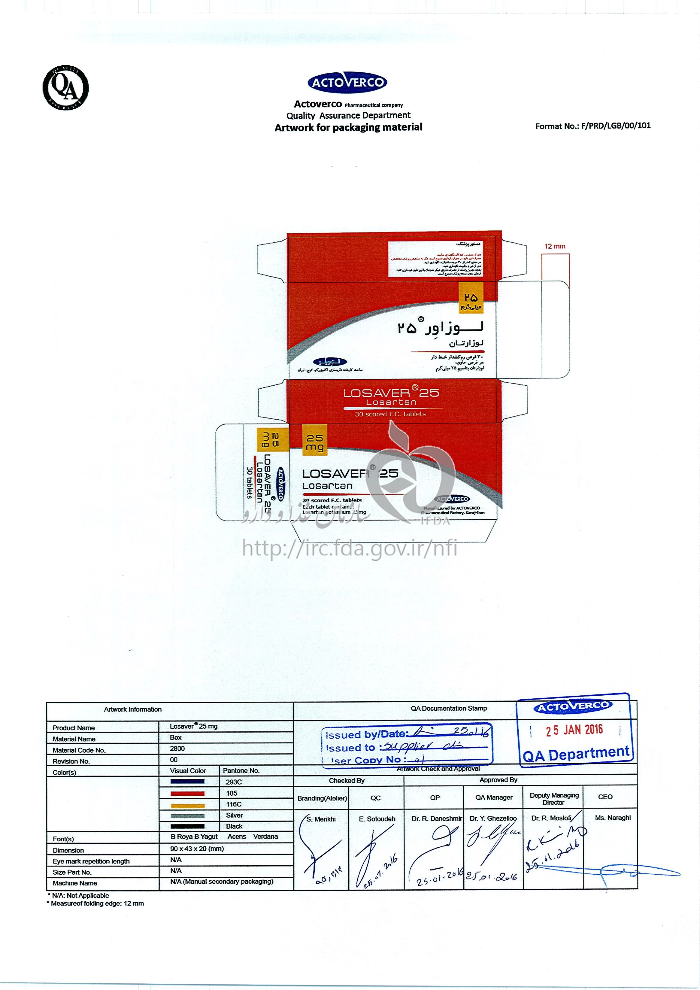 LOSARTAN POTASSIUM TABLET ORAL 25 mg