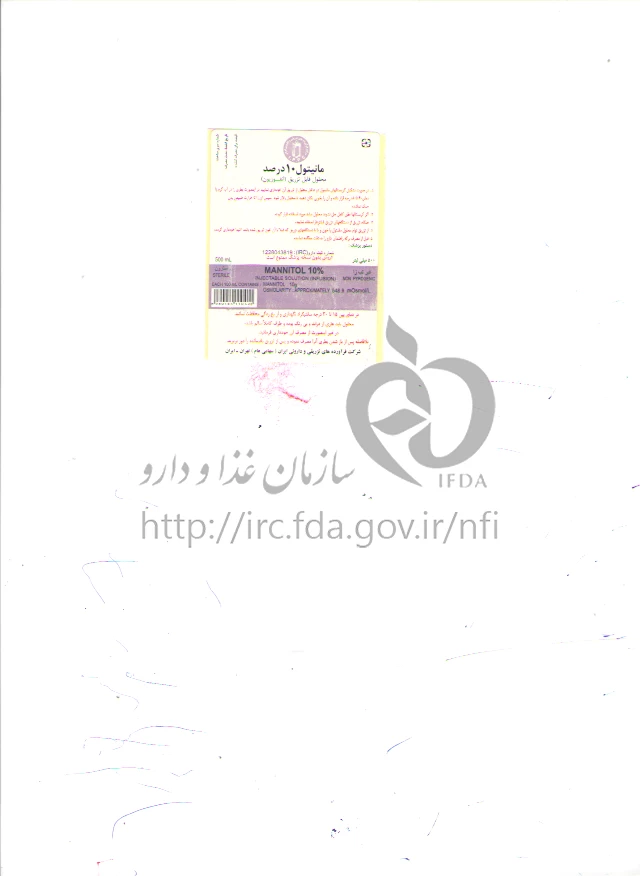 مانیتول محلول تزریقی داخل وریدی 10 % 500MILLILITER