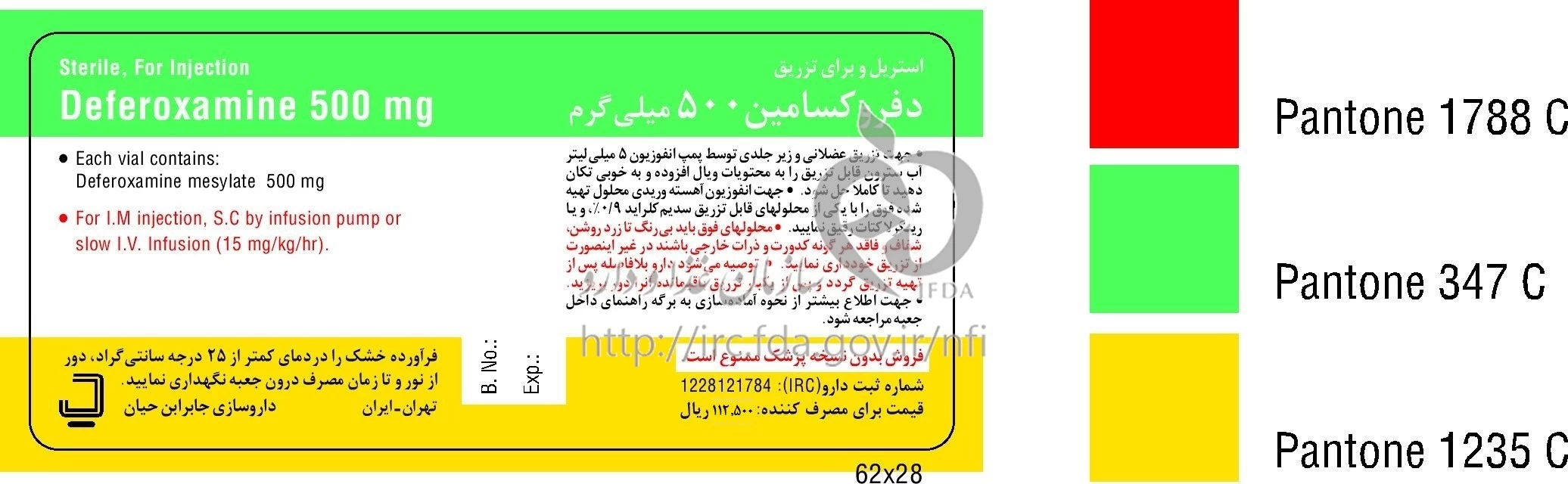 دفروکسامین پودر برای تهیه محلول تزریقی پرنترال 500 mg