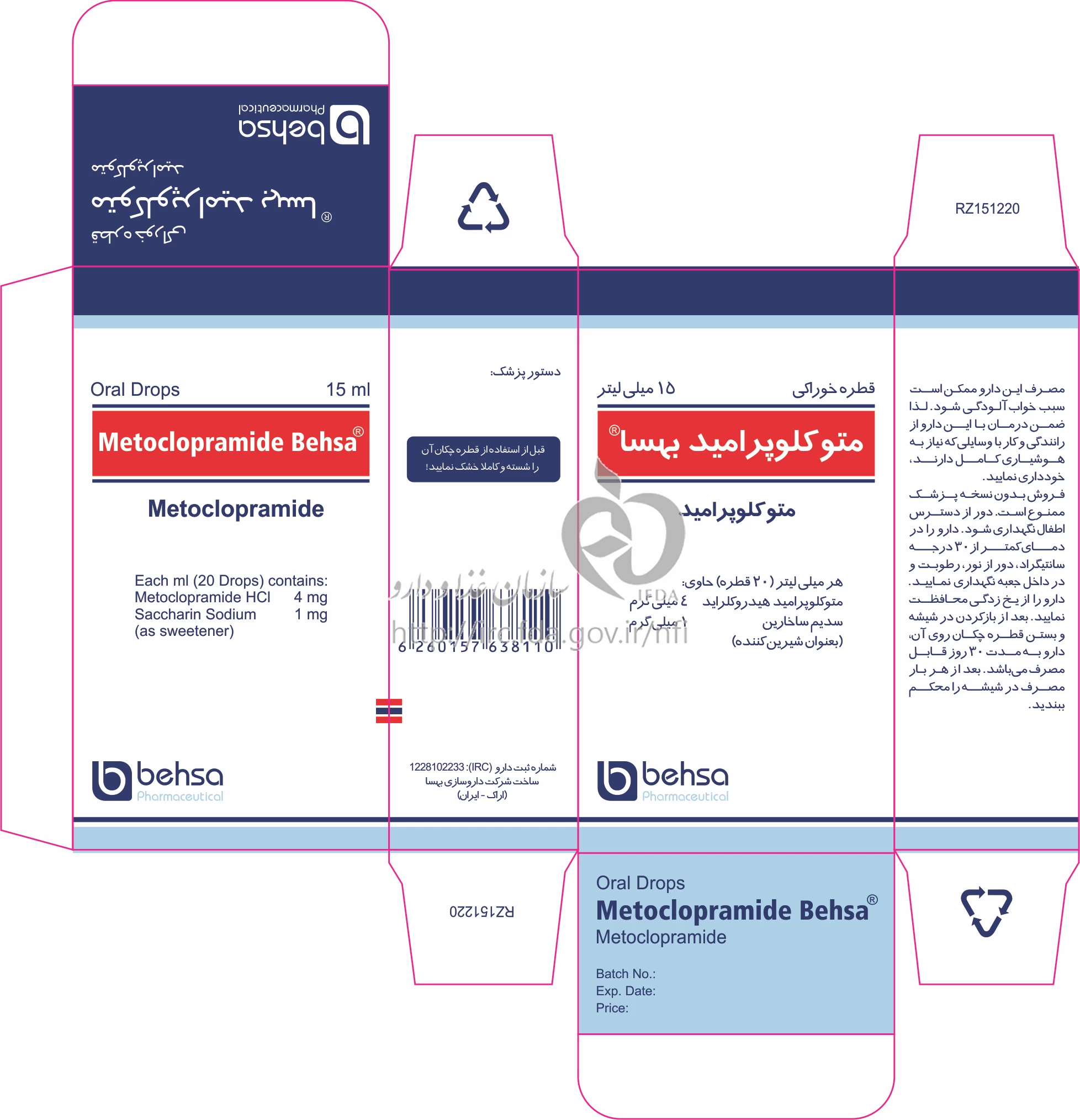 متوکلوپرامید محلول ، قطره خوراکی 4 mg/1mL 15MILLILITER
