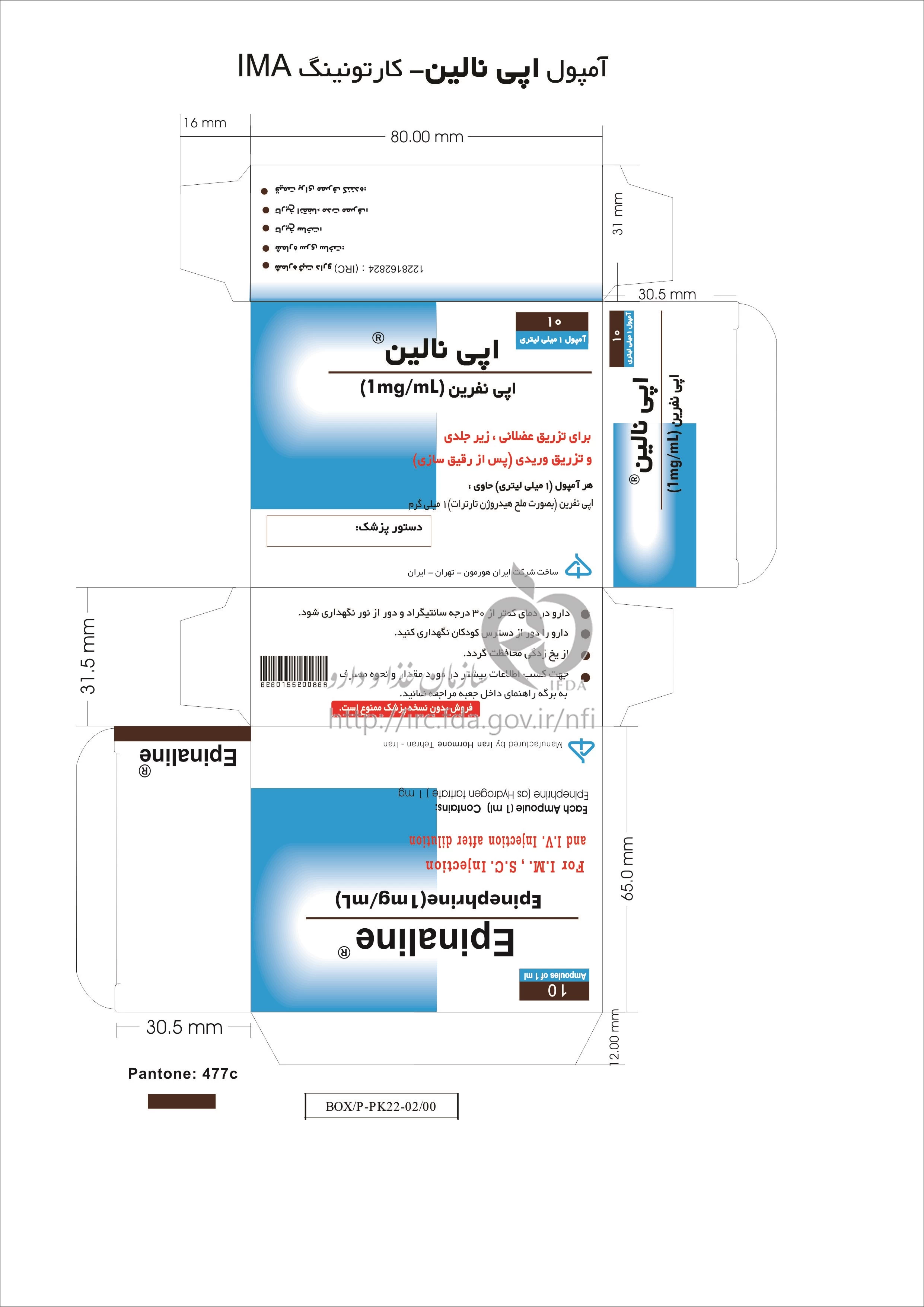 دکترها اپی نالین تزریقی پرنترال 1 mg/1mL 1MILLILITER