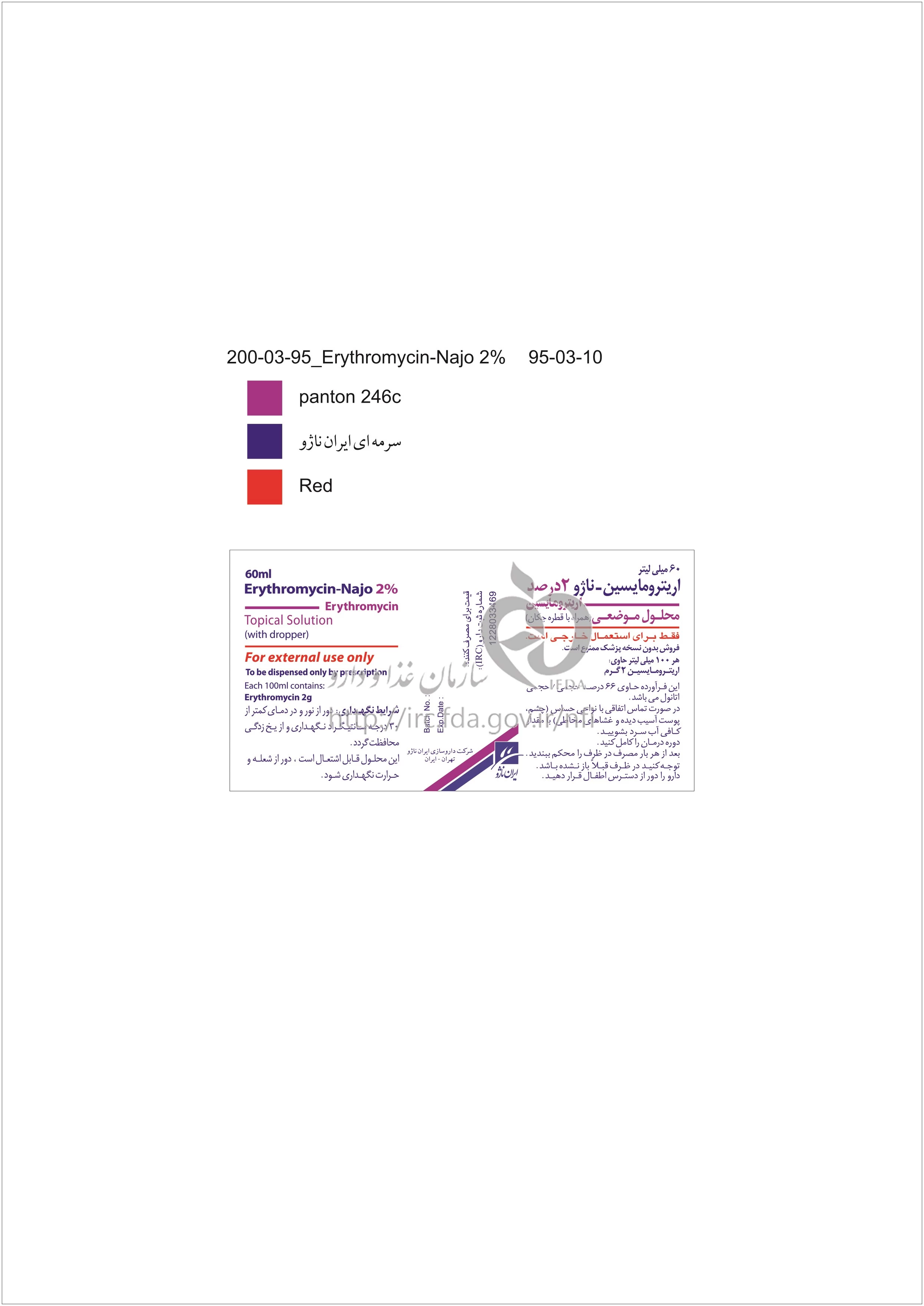 اریترومایسین - ناژو محلول موضعی 2 % 60MILLILITER