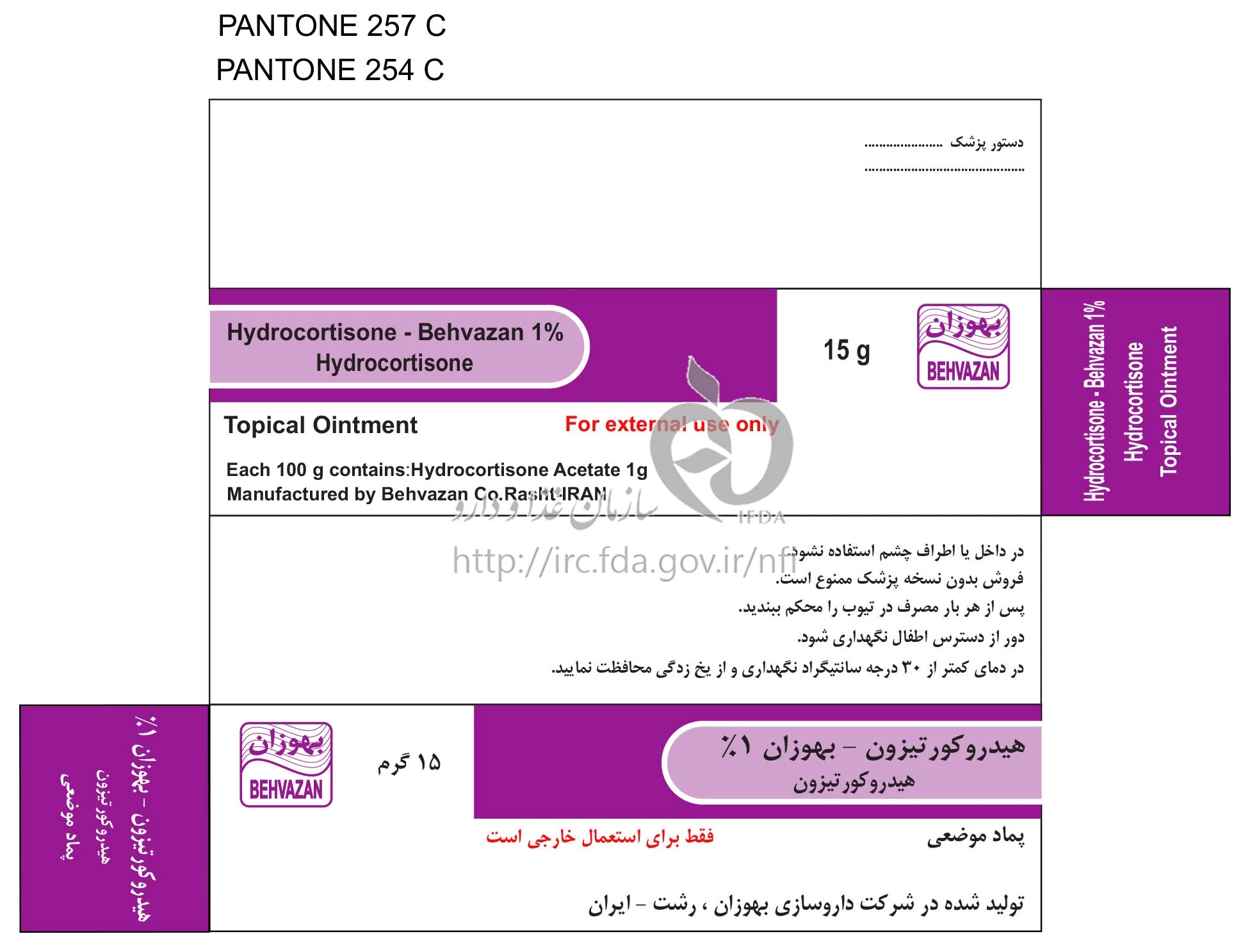 هیدروکورتیزون - بهوزان پماد موضعی 1 % 15GRAM