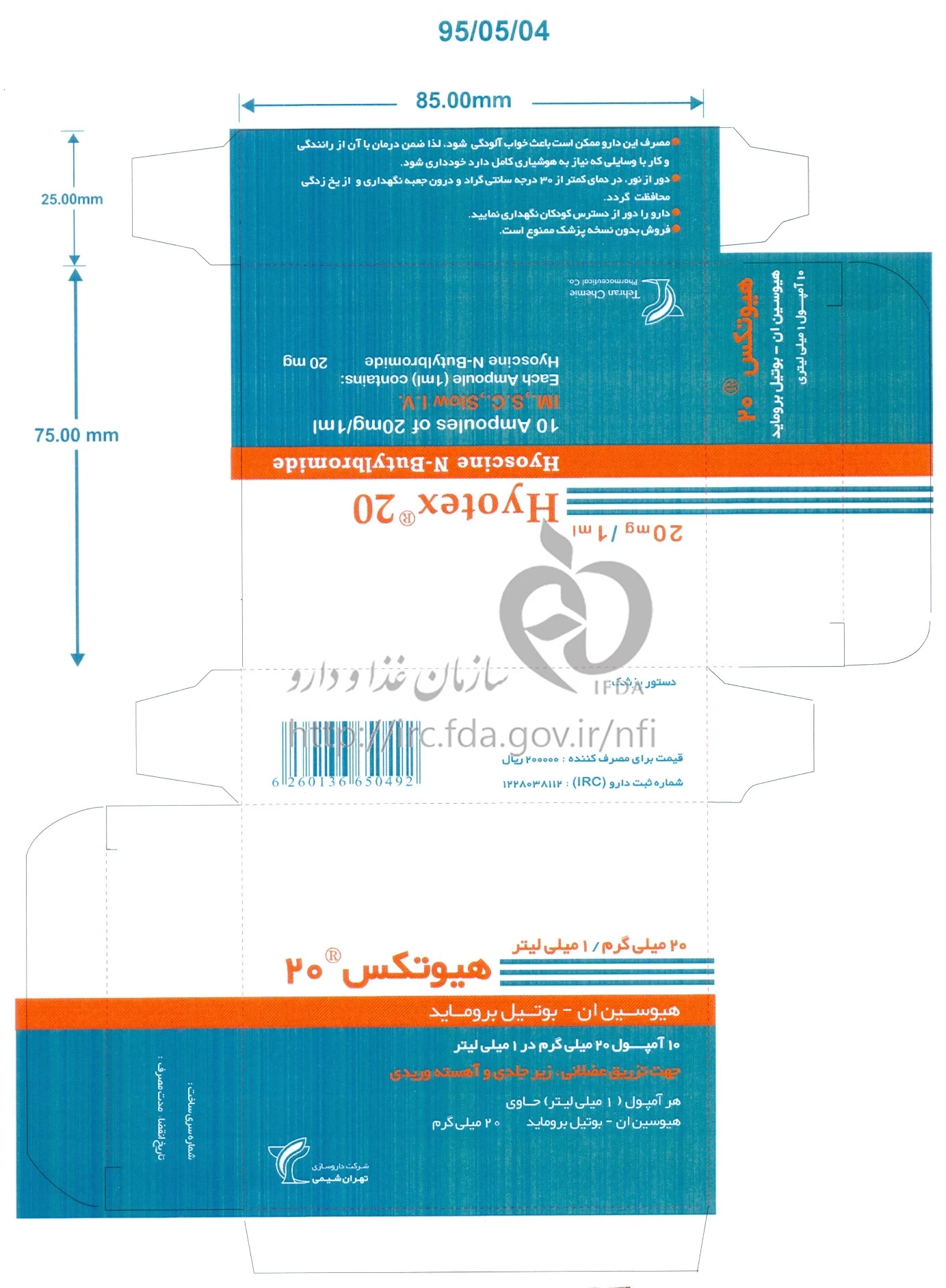 هیوتکس تزریقی پرنترال 20 mg/1mL