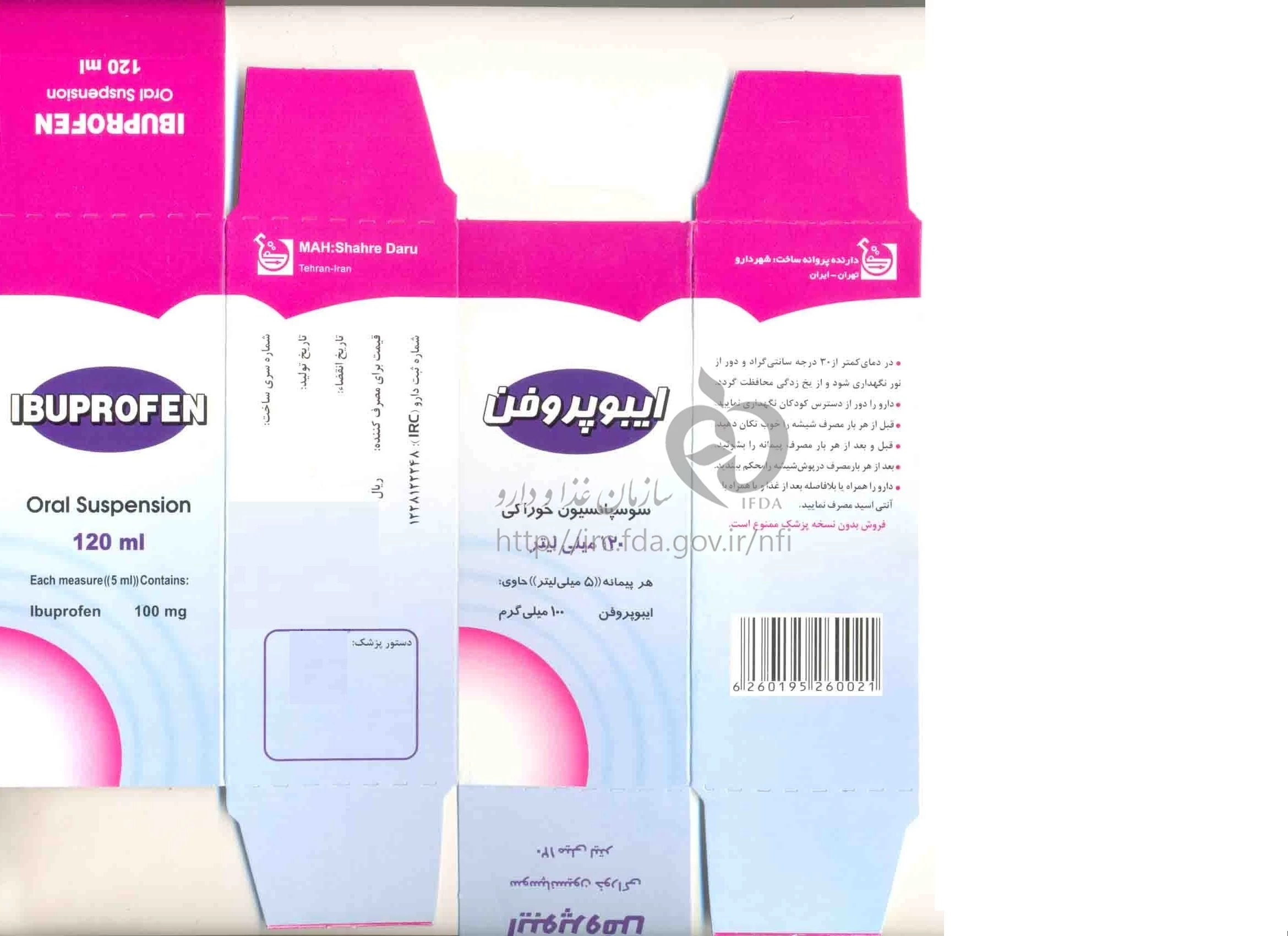ایبوپروفن سوسپانسیون خوراکی 100 mg/5mL 120MILLILITER