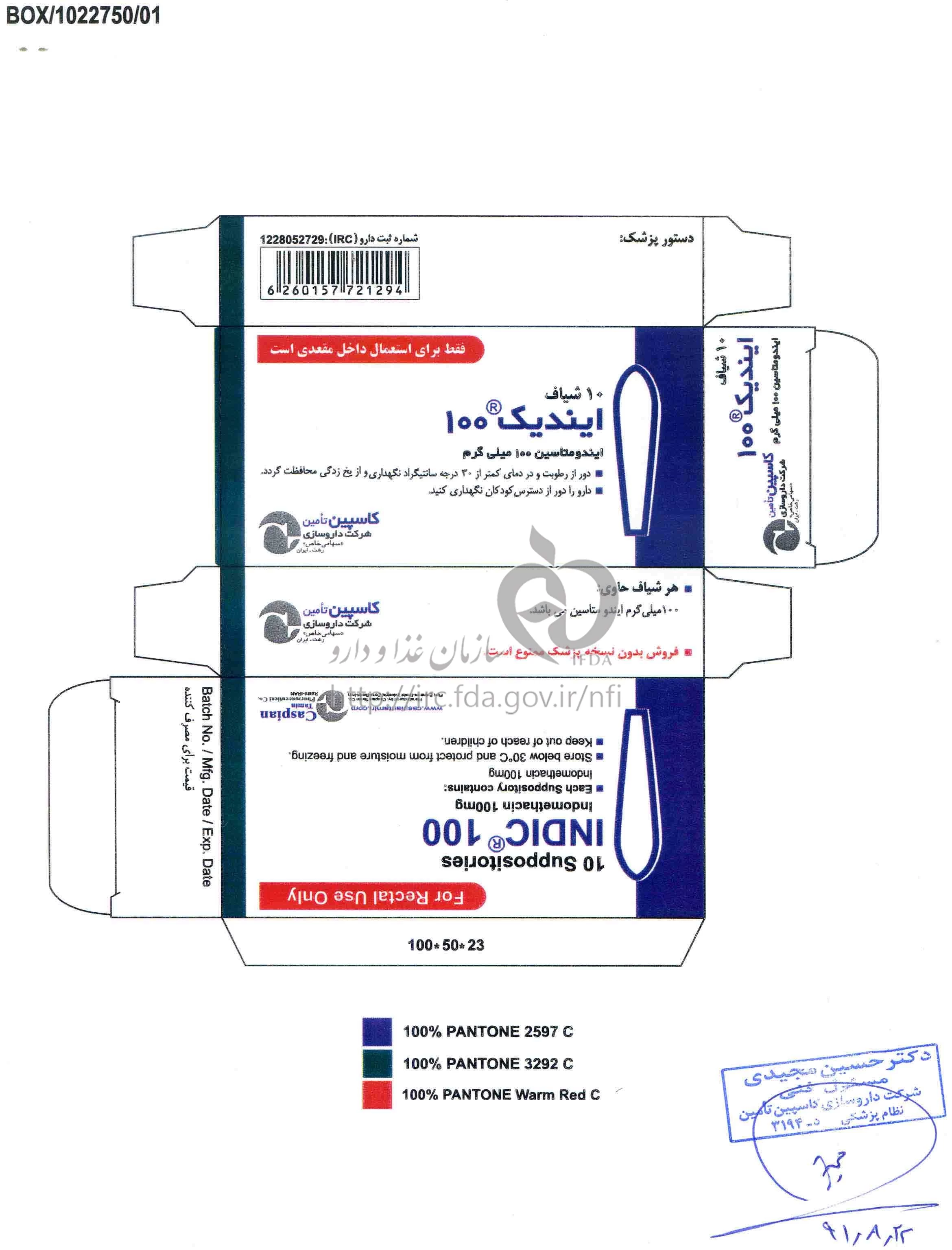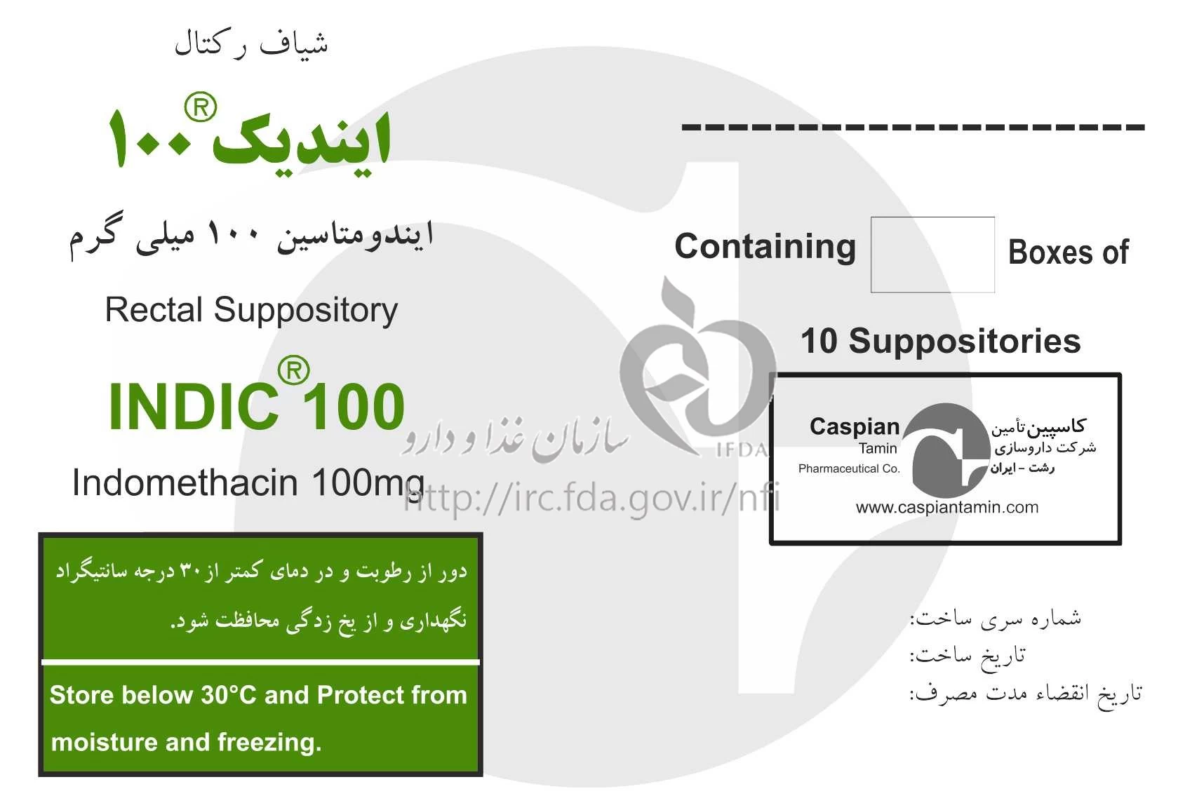 ایندیک شیاف مقعدی 100 mg
