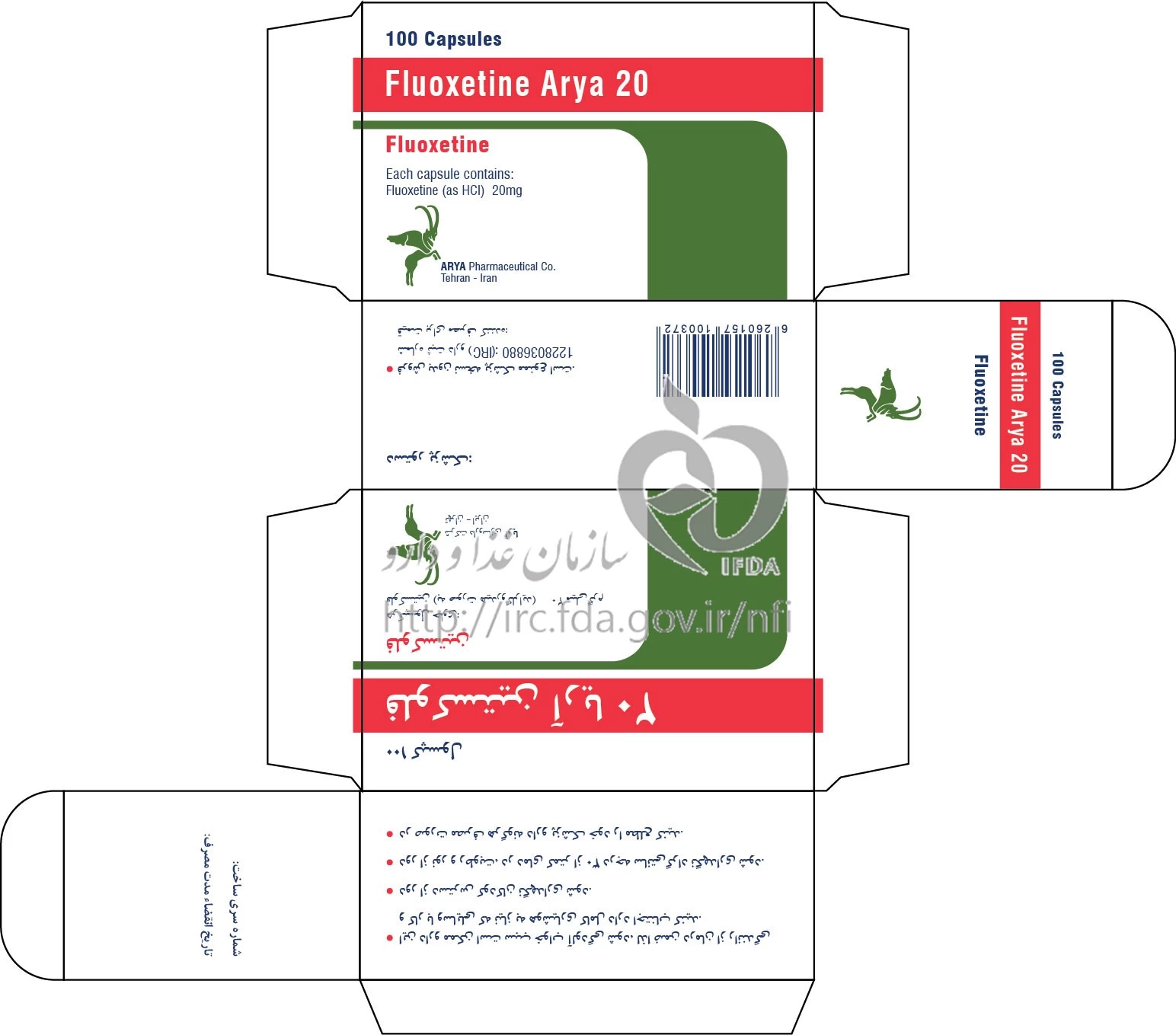 فلوکستین آریا کپسول خوراکی 20 mg