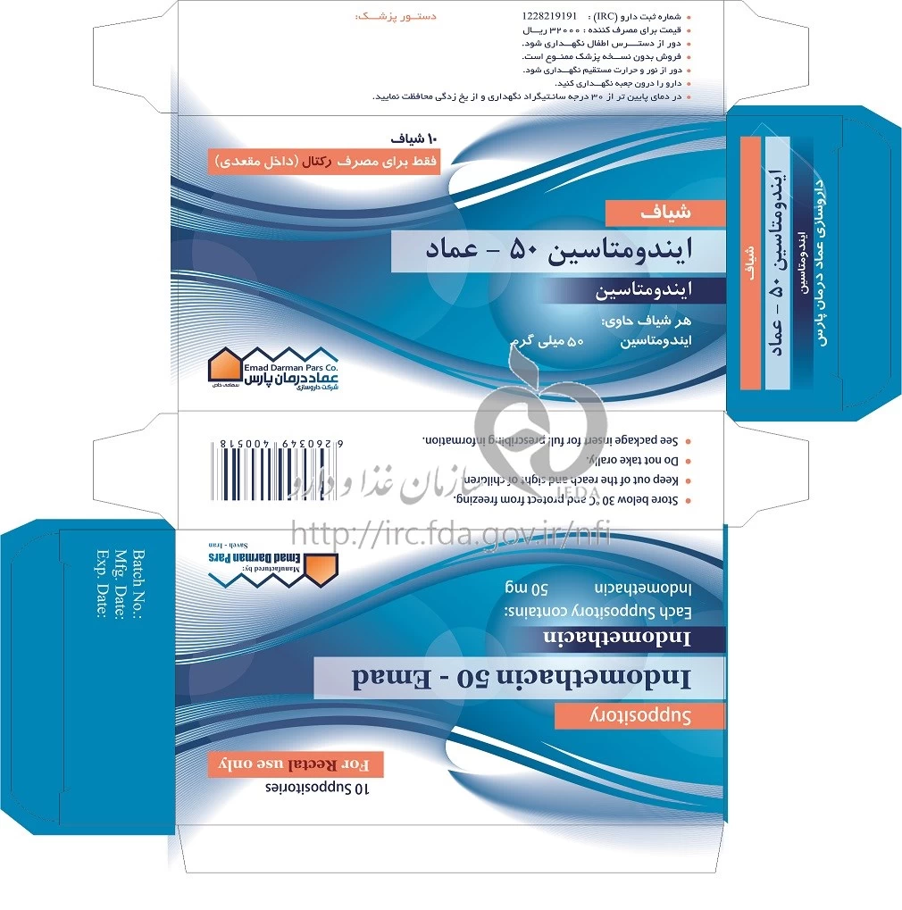 ایندومتاسین - عماد شیاف مقعدی 50 mg