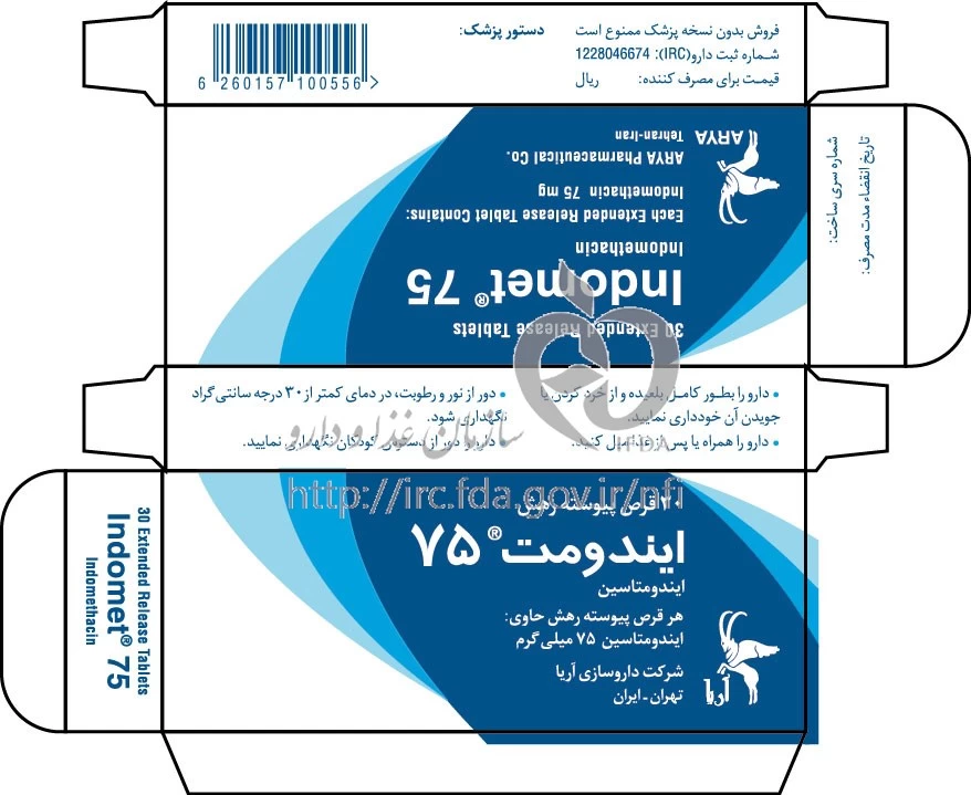 ایندومت قرص پیوسته رهش خوراکی 75 mg