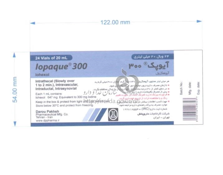 موارد مصرف آیوپک تزریقی پرنترال 300 mg/1mL 20MILLILITER