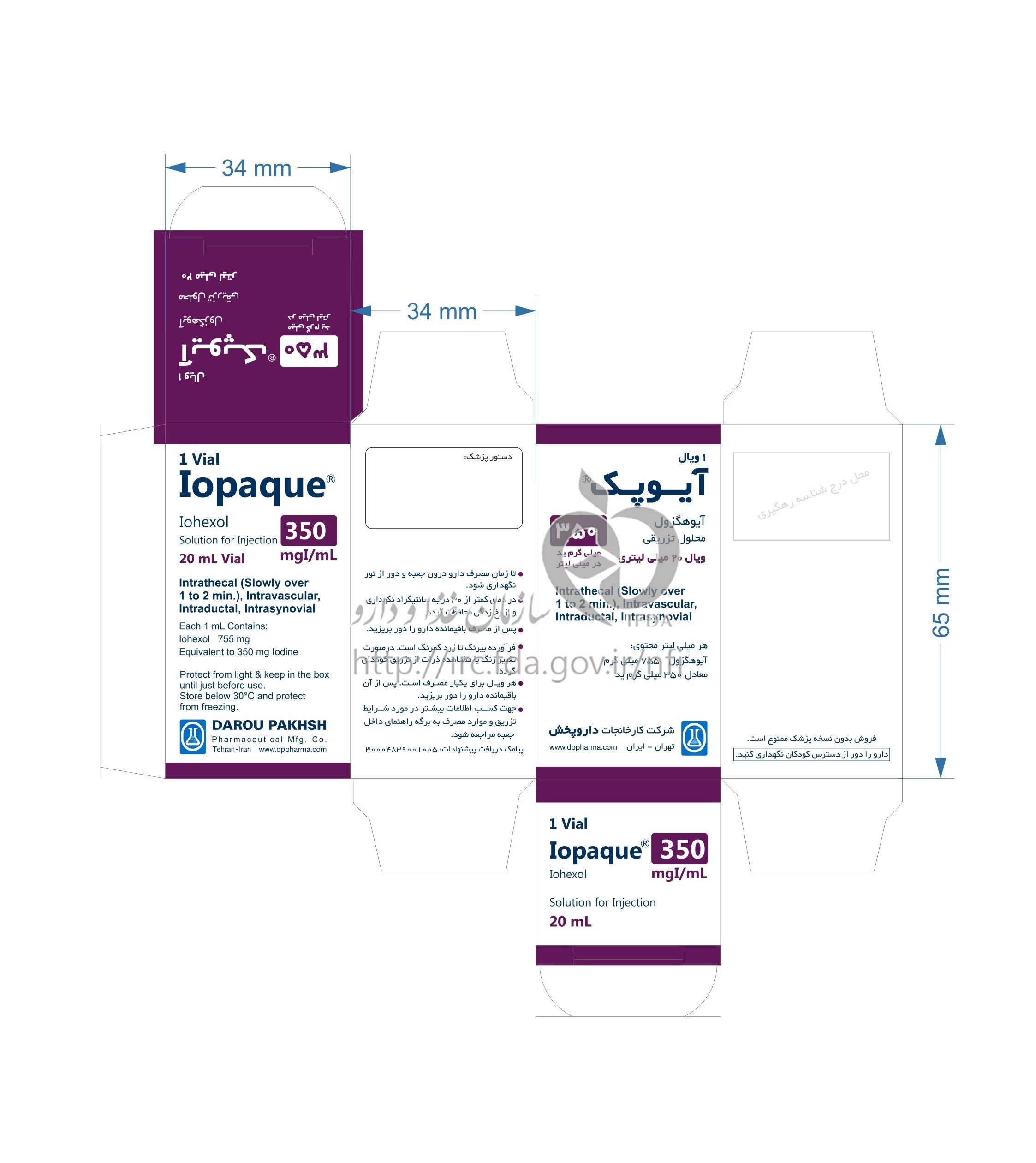 دکترها آیوپک تزریقی پرنترال 350 mg/1mL 20MILLILITER