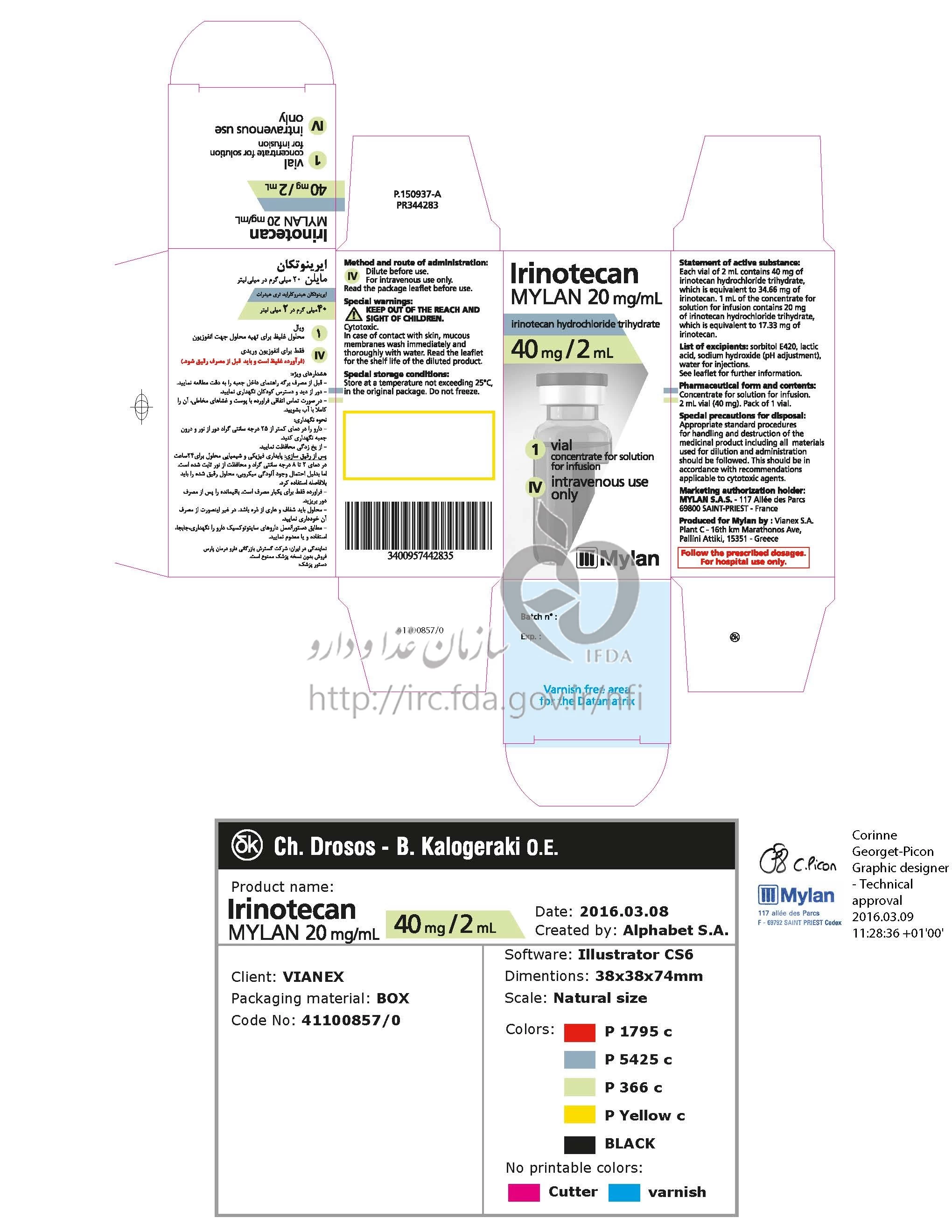 ایرینوتکان مایلن تزریقی پرنترال 20 mg/1mL 2MILLILITER
