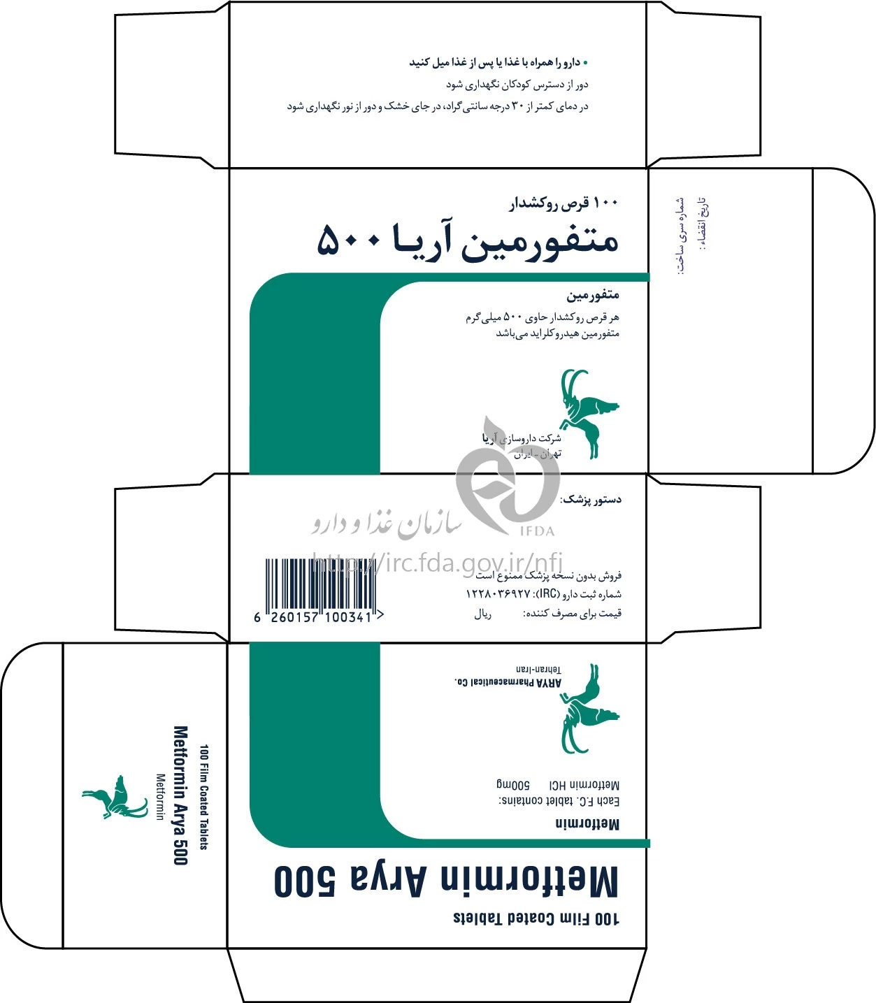 دکترها متفورمین آریا قرص خوراکی 500 mg
