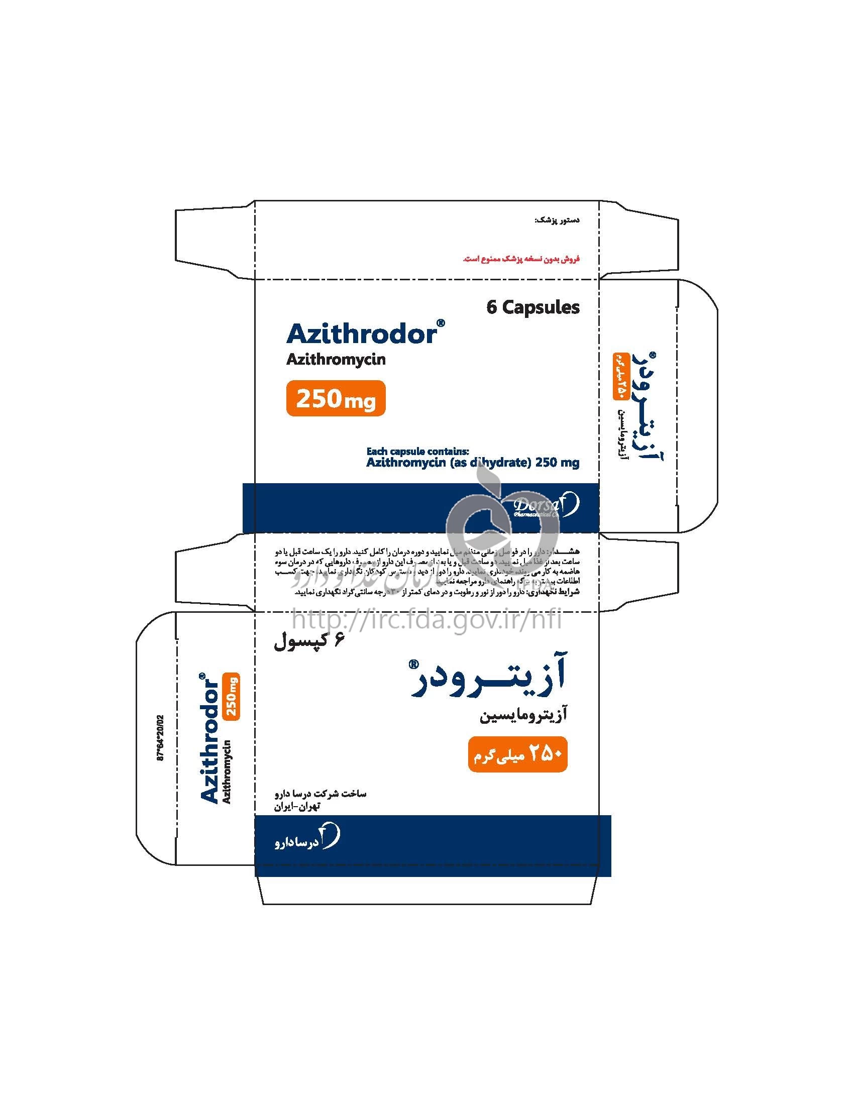 دکترها آزیترودر کپسول خوراکی 250 mg