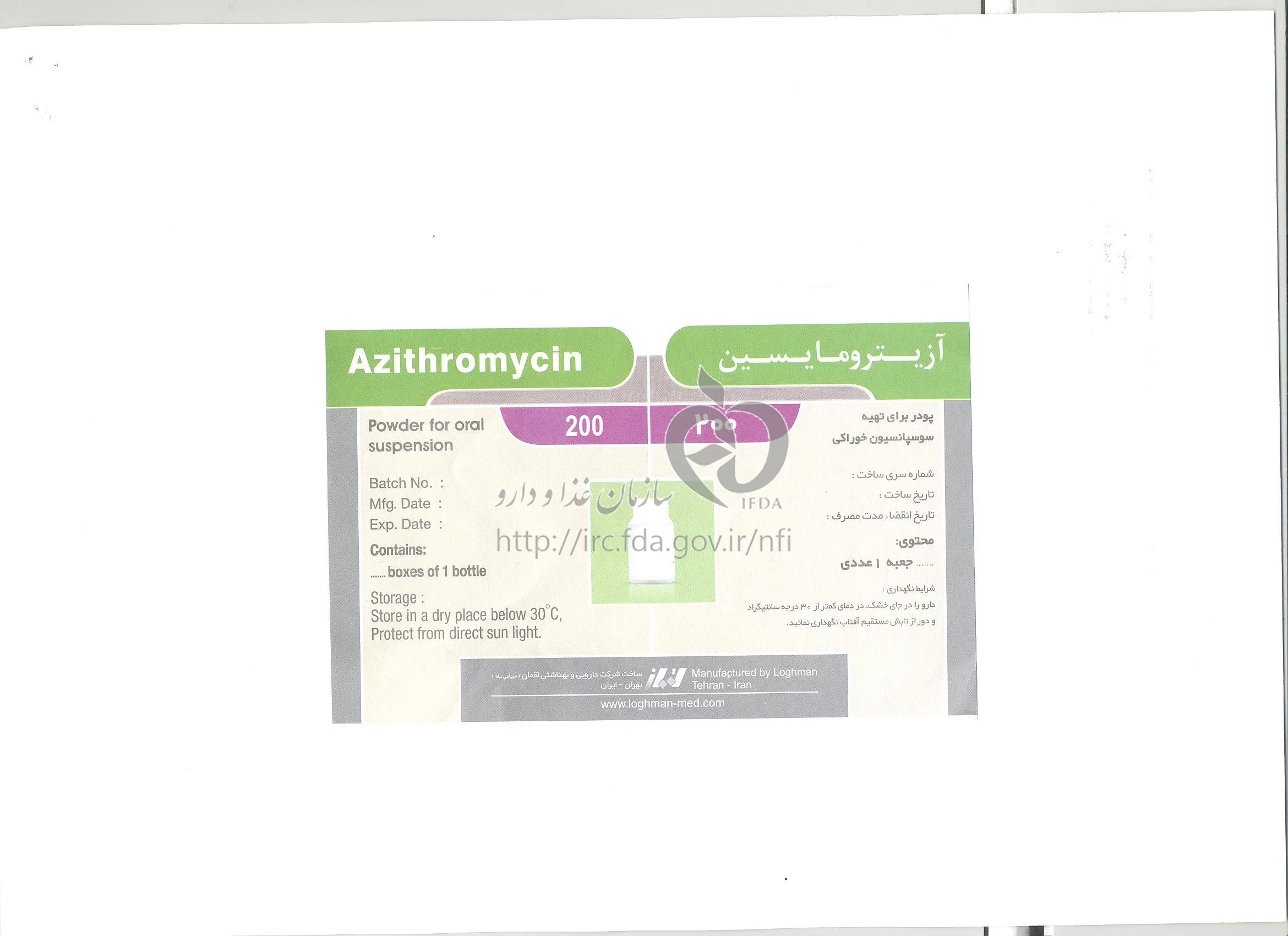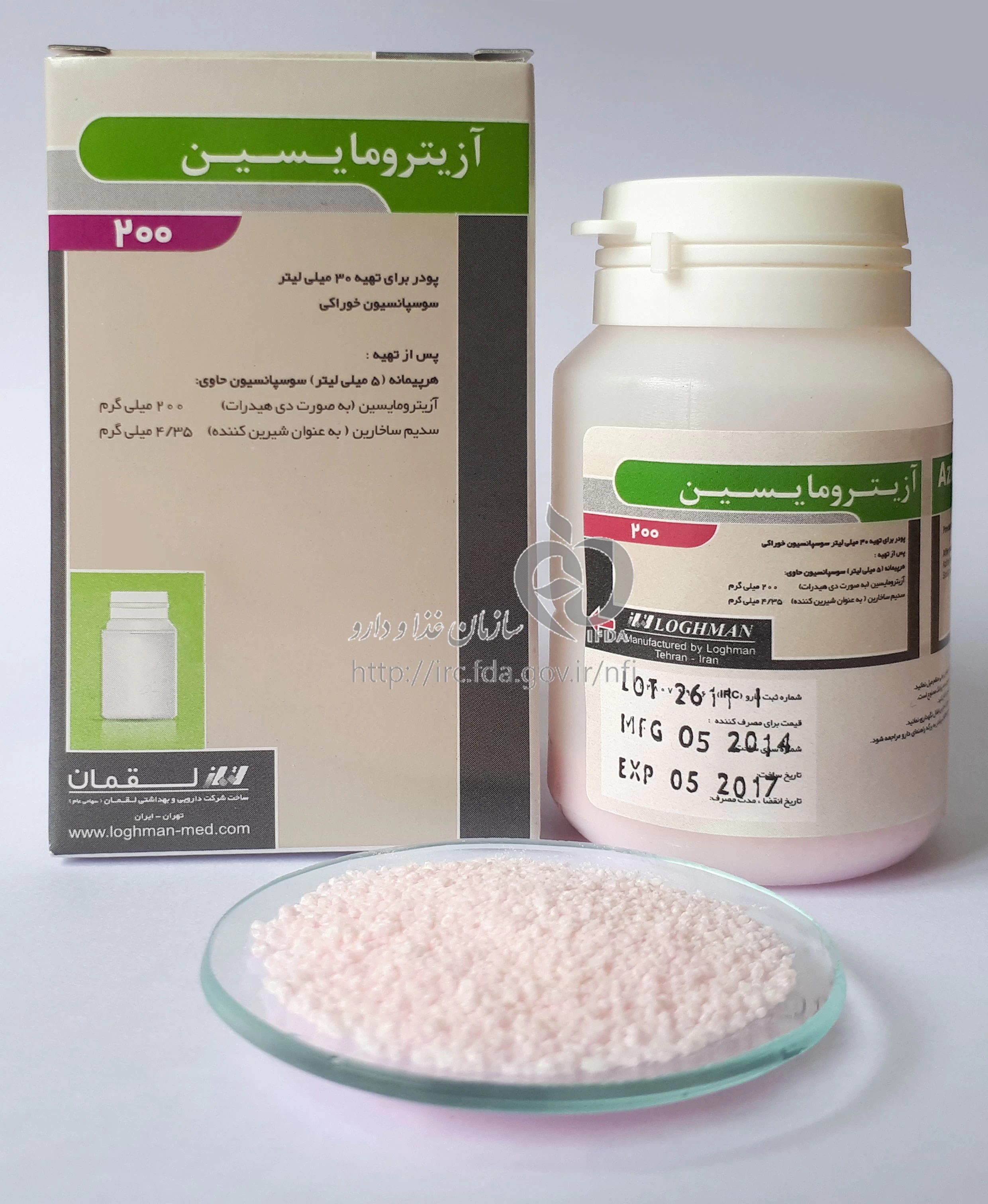 آزیترومایسین پودر برای تهیه سوسپانسیون خوراکی 200 mg/5mL 15MILLILITER