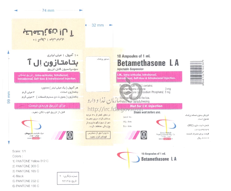بتامتازون سوسپانسیون تزریقی پیوسته رهش پرنترال 3 mg/3 mg/1mL