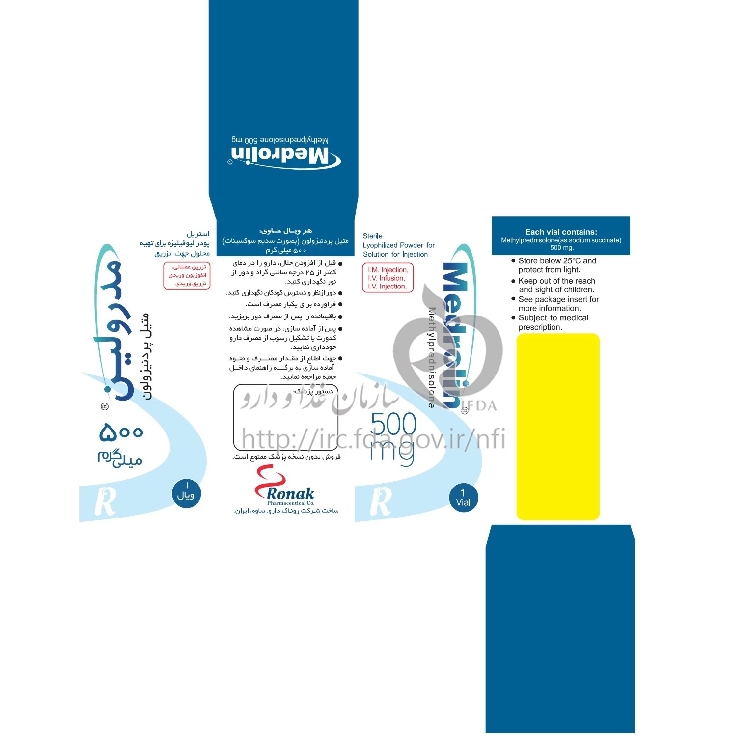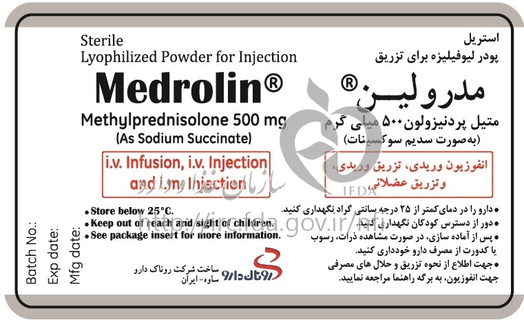 مدرولین پودر برای تهیه محلول تزریقی پرنترال 500 mg