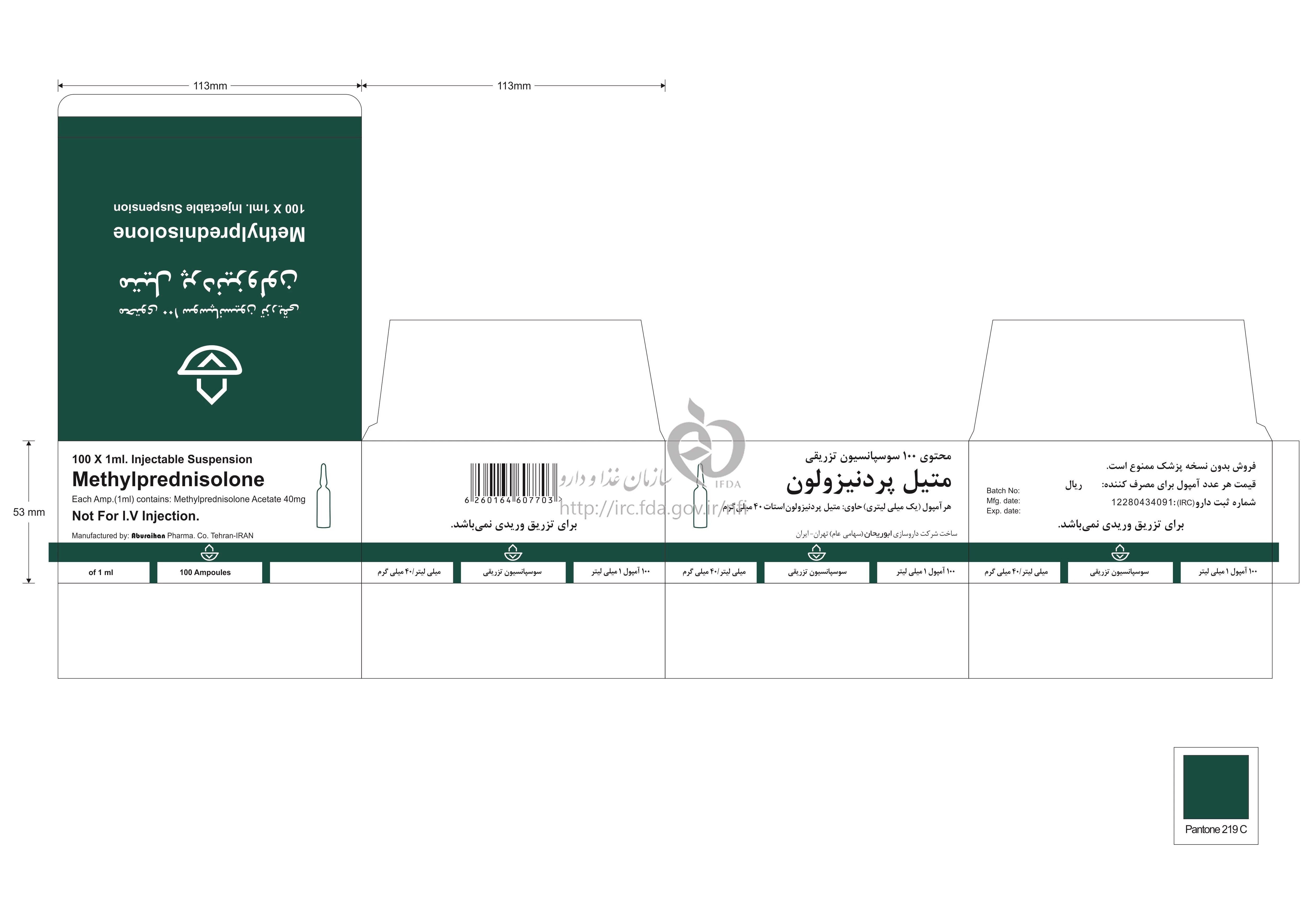 متیل پردنیزولون استات سوسپانسیون تزریقی پرنترال 40 mg/1mL