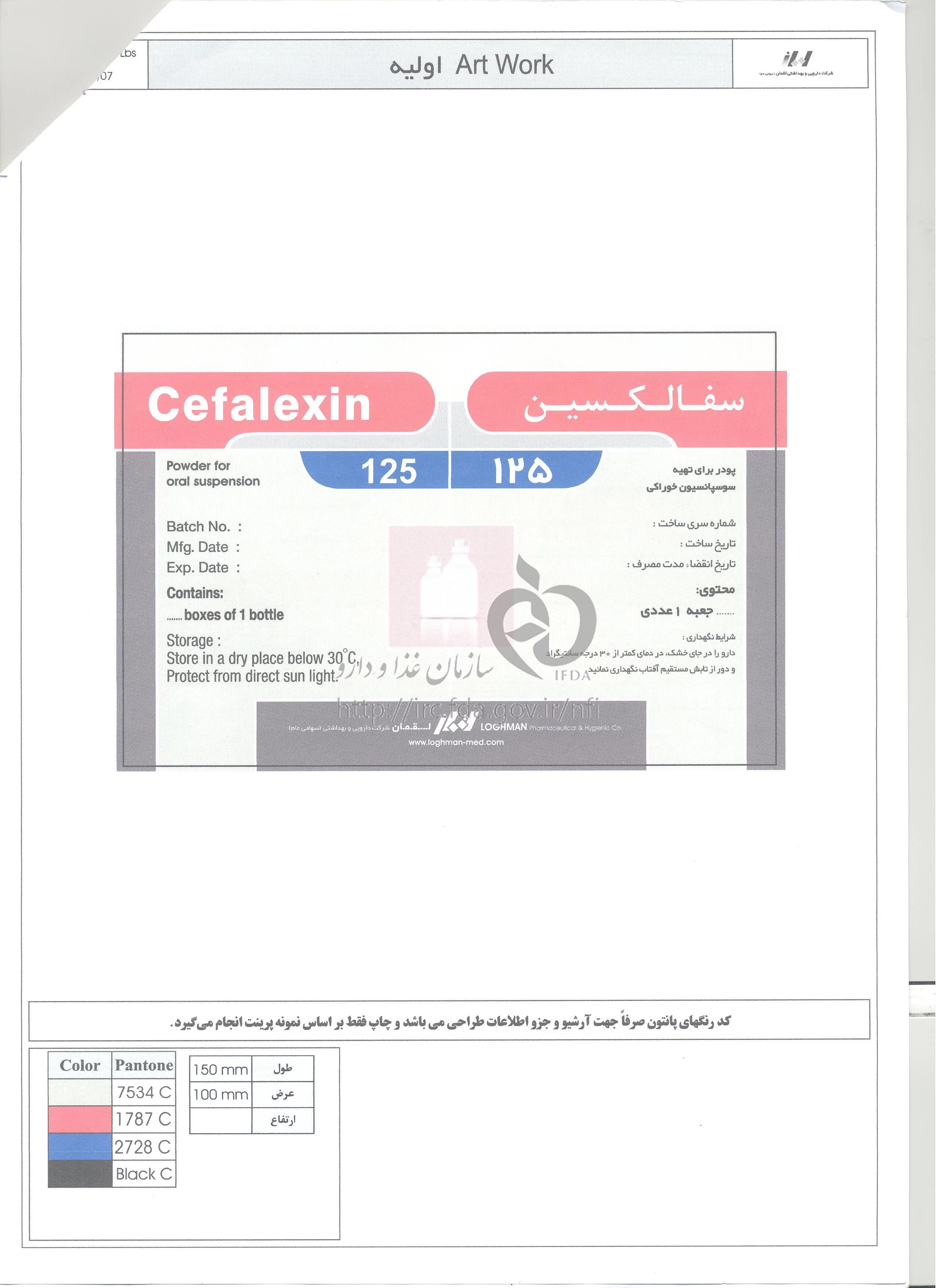 سفالکسین پودر برای تهیه سوسپانسیون خوراکی 125 mg/5mL 100MILLILITER