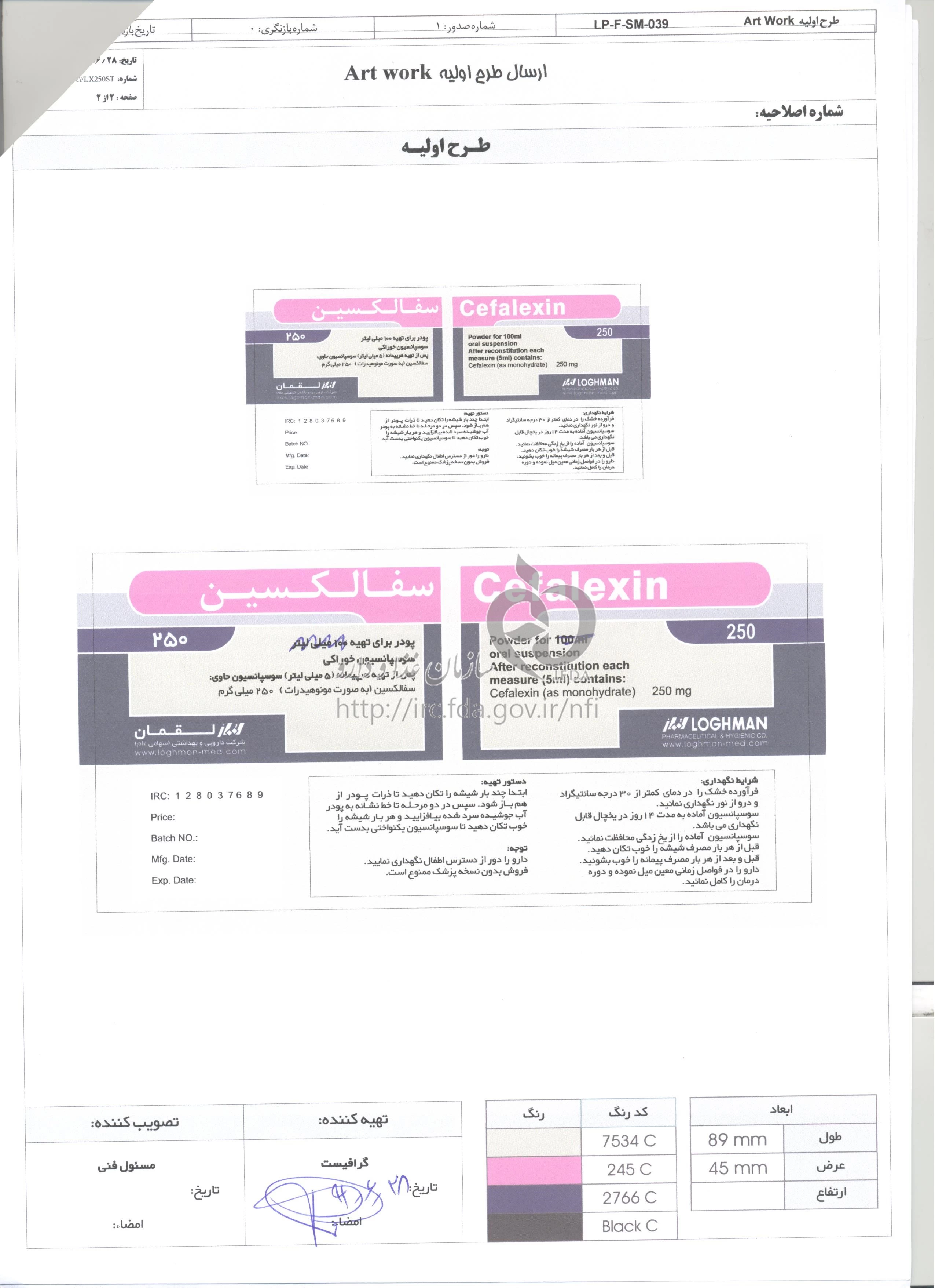 سفالکسین پودر برای تهیه سوسپانسیون خوراکی 250 mg/5 mL 100MILLILITER