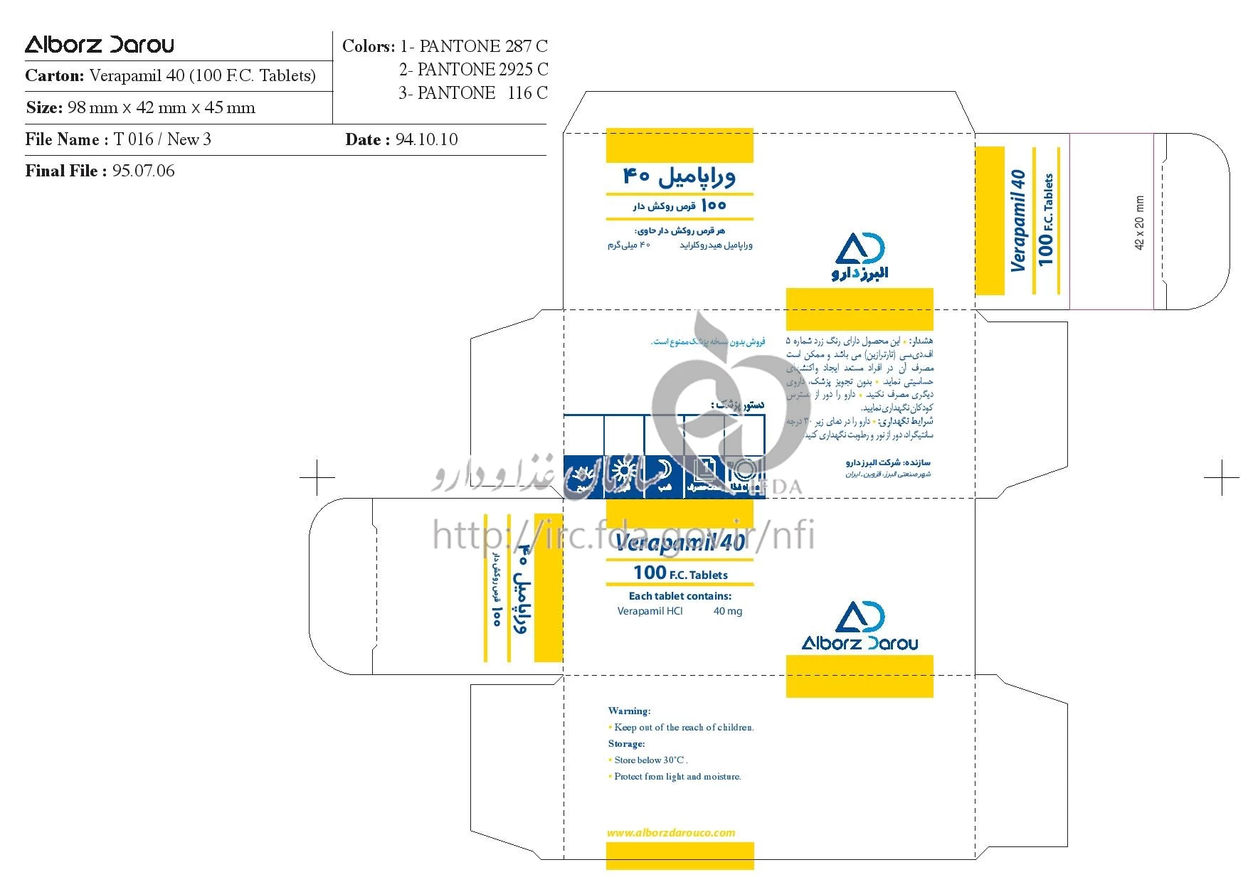 تداخل های دارویی وراپامیل قرص خوراکی 40 mg