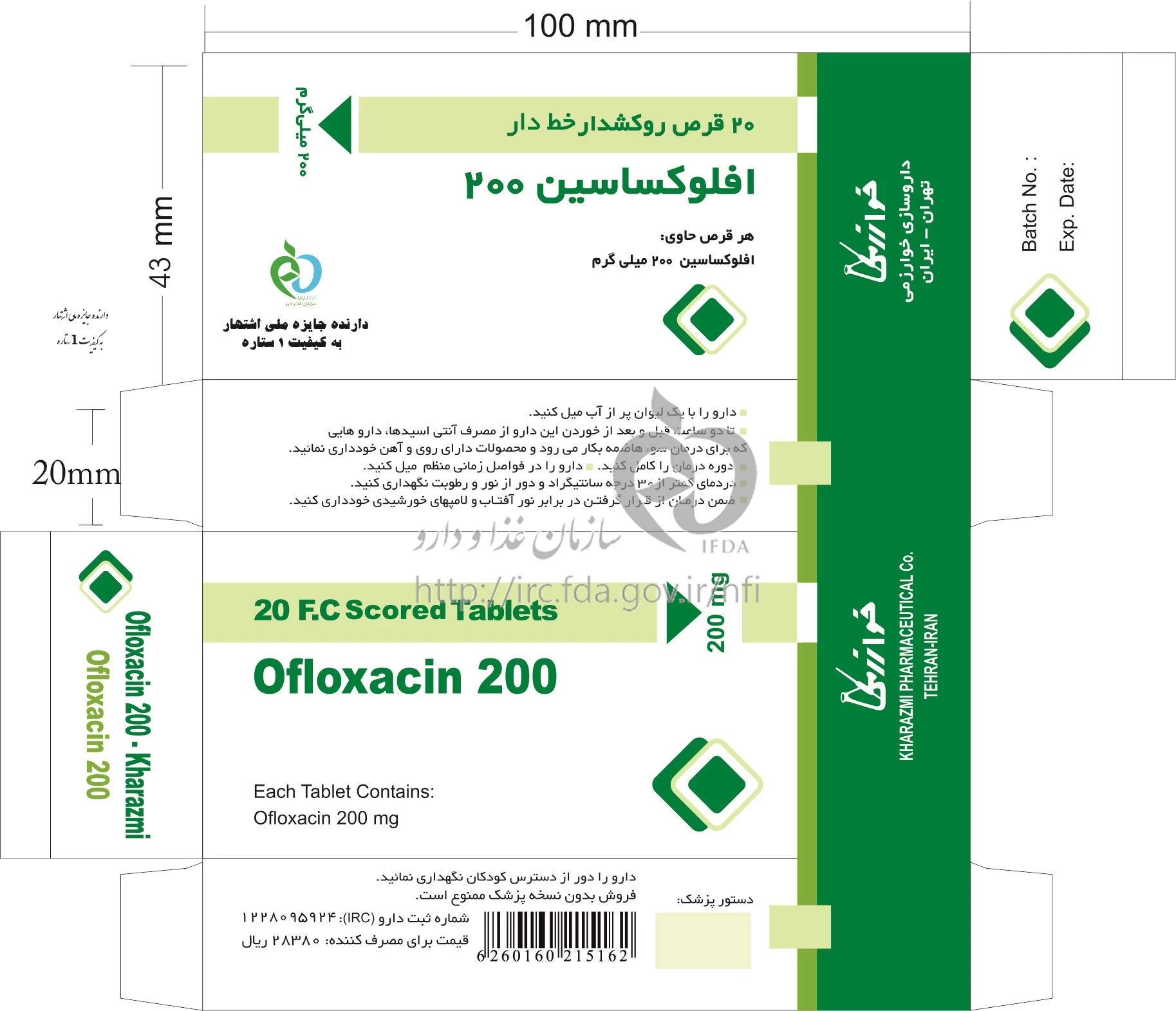 افلوکساسین قرص خوراکی 200 mg