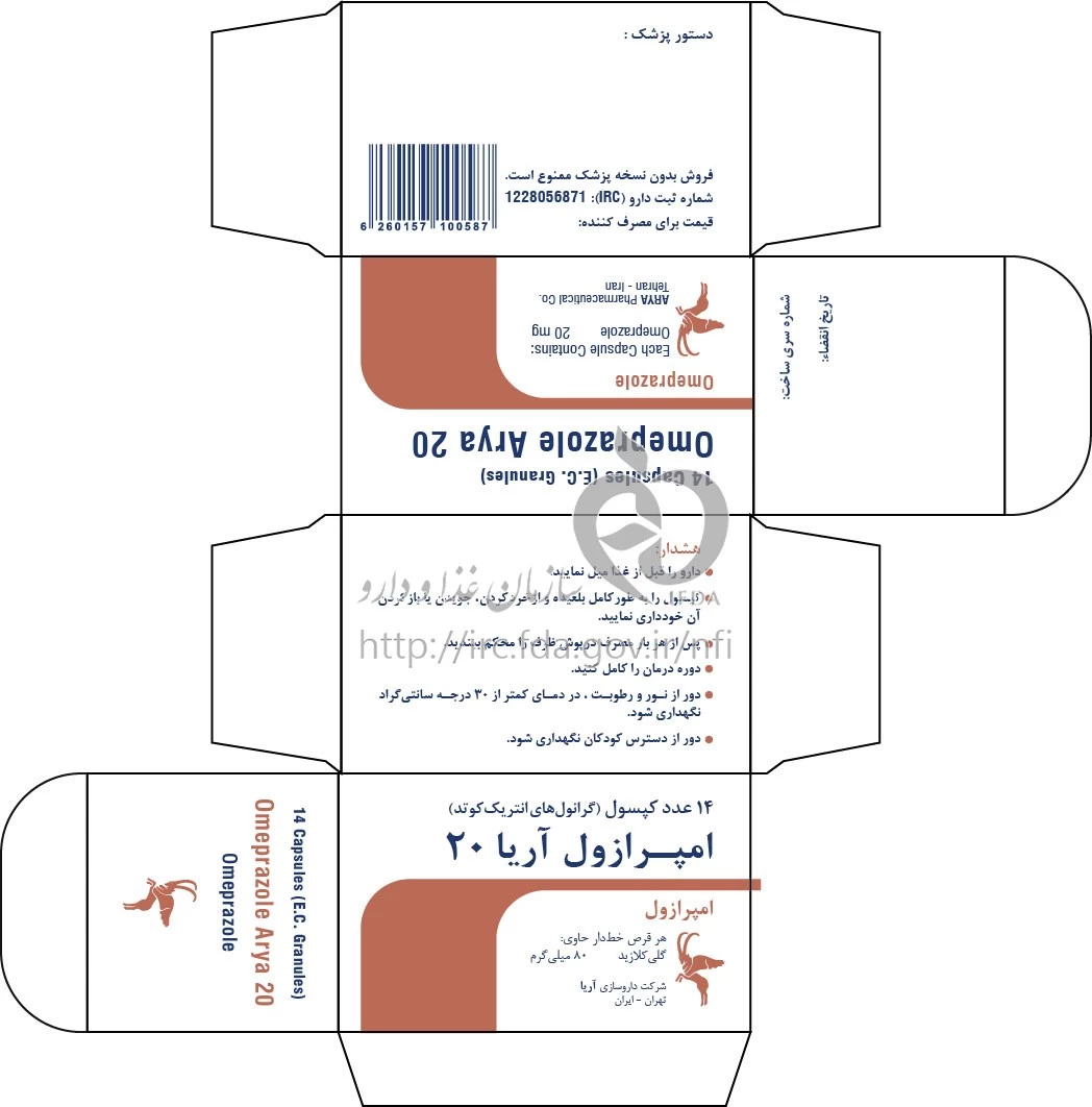 دکترها امپرازول آریا کپسول (پلت های انتریک کوتد) خوراکی 20 mg