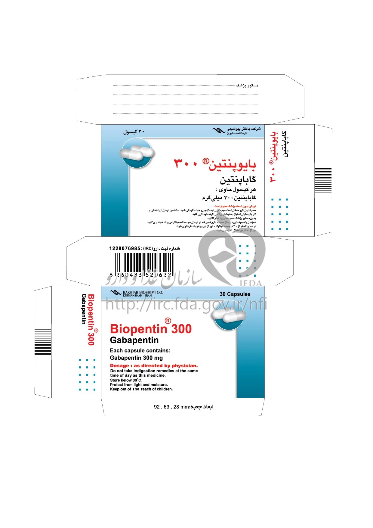 دکترها بایوپنتین کپسول خوراکی 300 mg