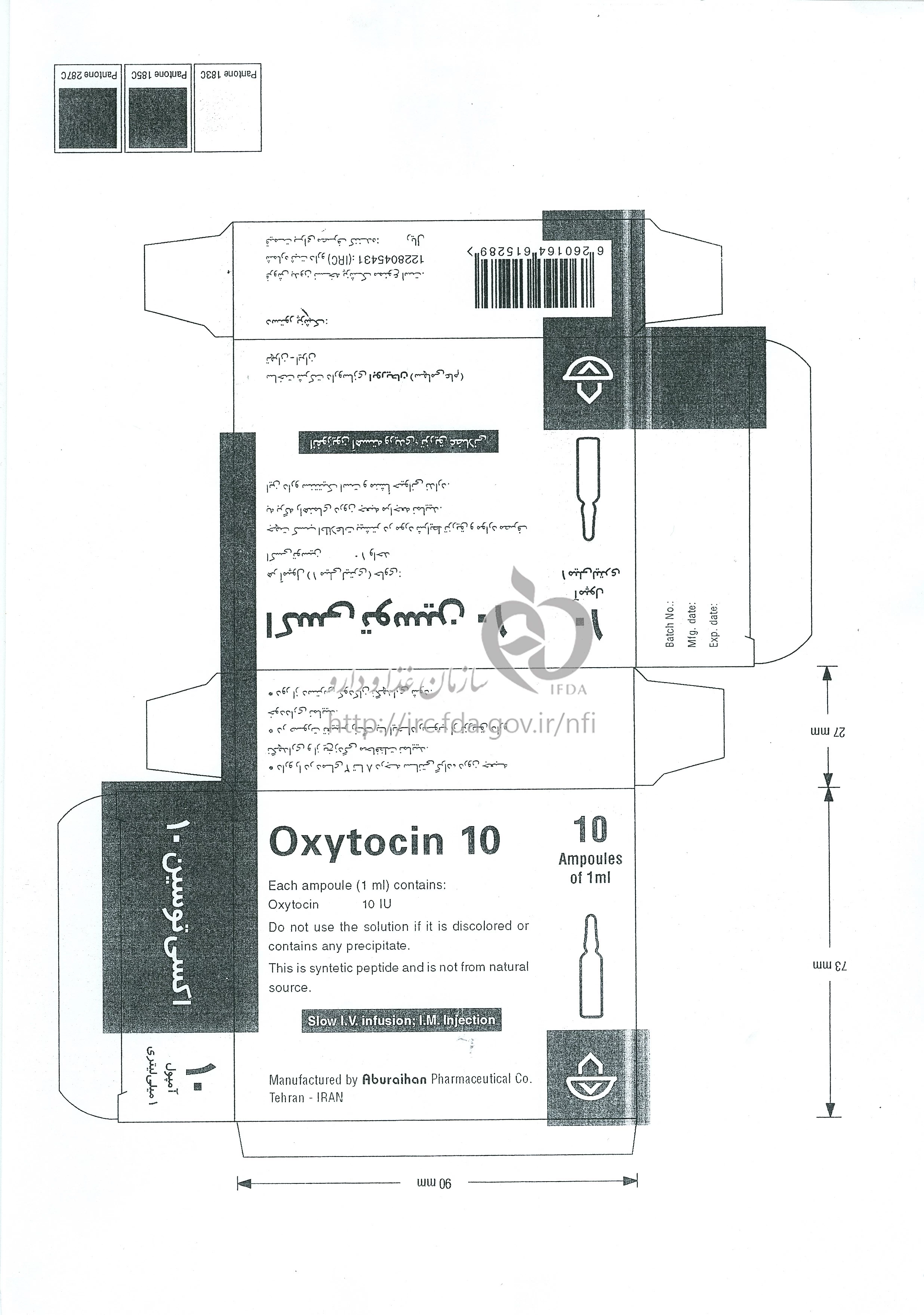اکسی توسین تزریقی پرنترال 10 U/1mL