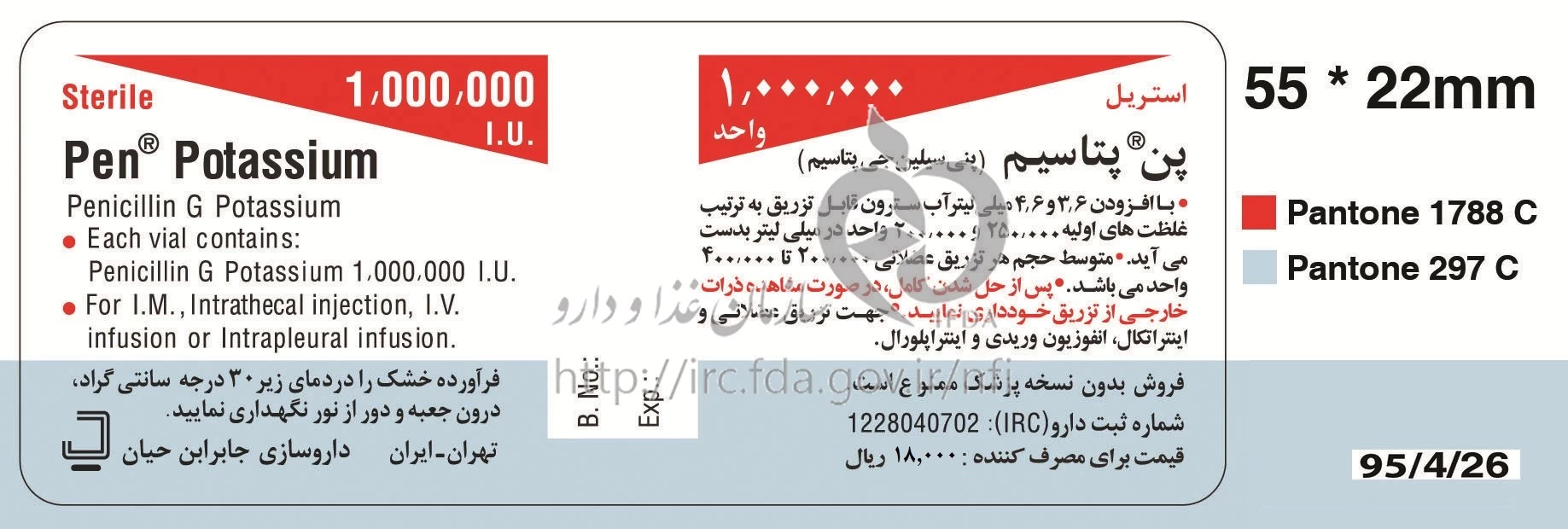 پن پتاسیم پودر برای تهیه محلول تزریقی پرنترال 1000000 [iU]