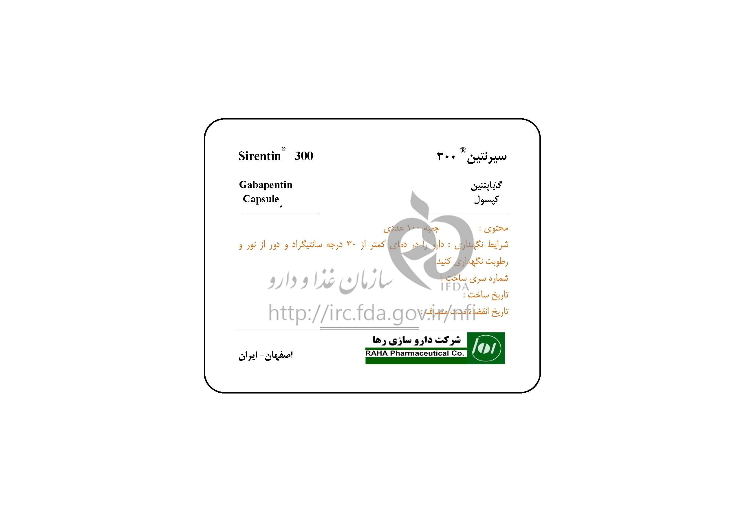 سیرنتین کپسول خوراکی 300 mg
