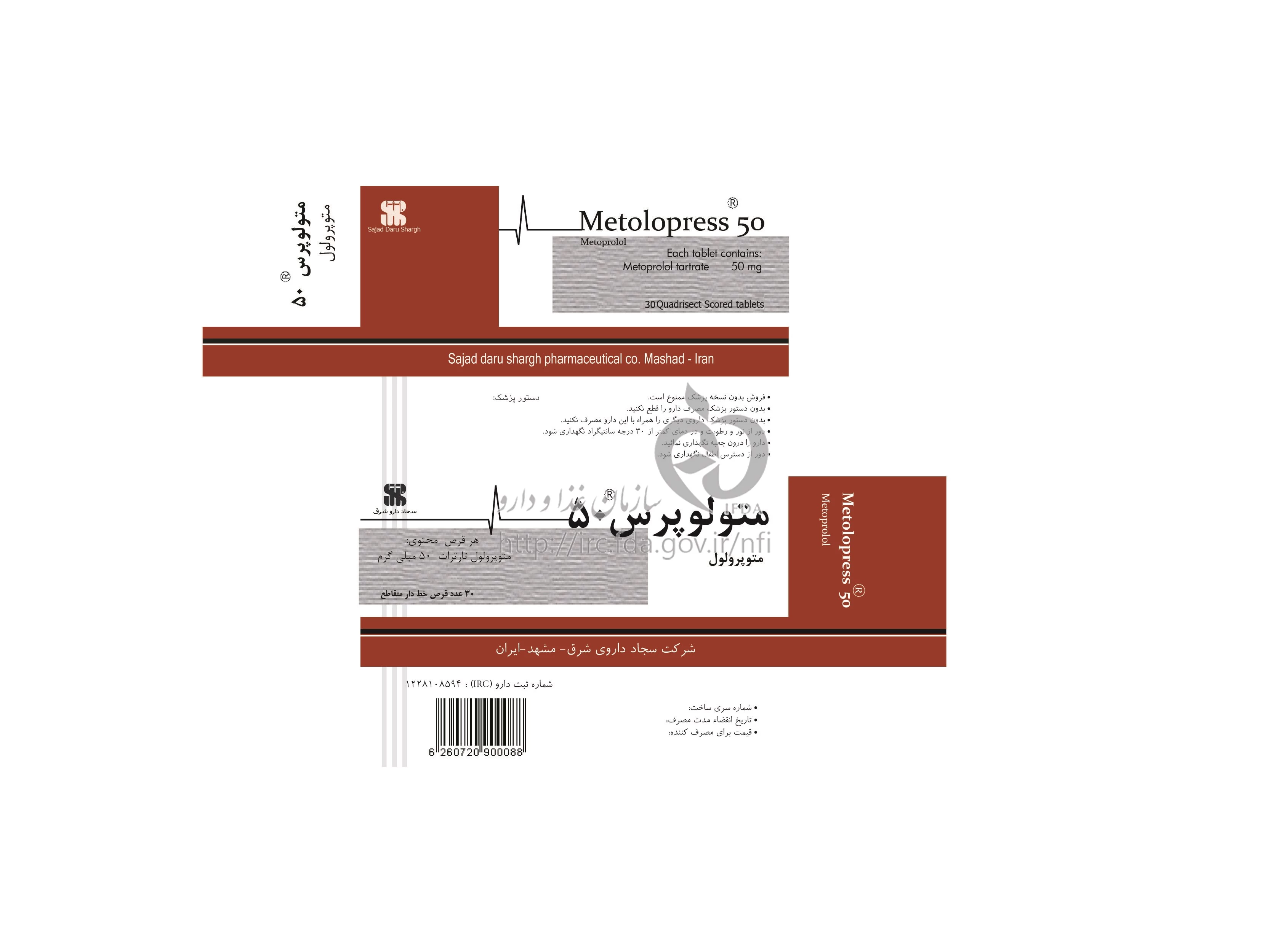موارد مصرف متولوپرس قرص خوراکی 50 mg