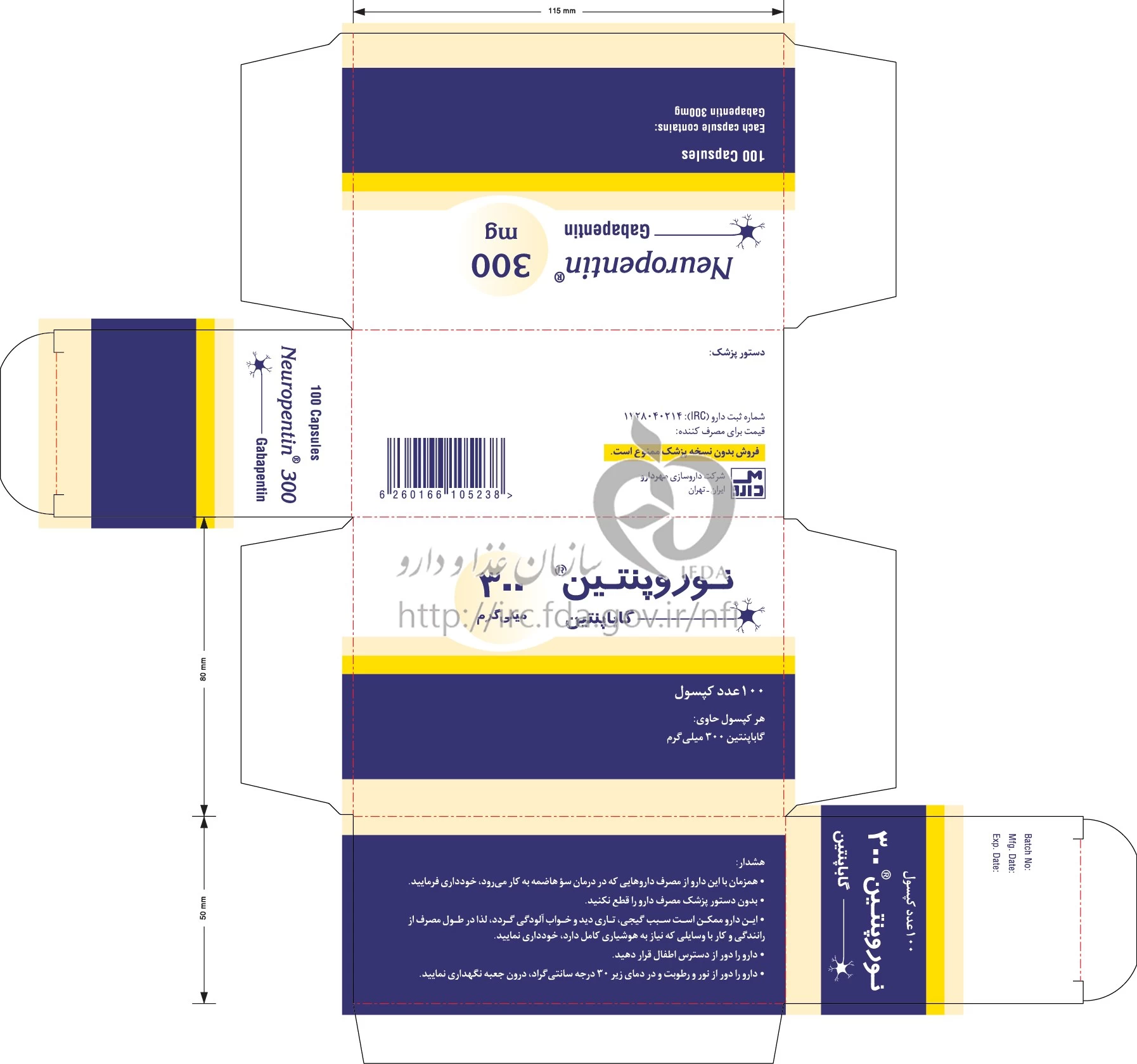 دکترها نوروپنتین کپسول خوراکی 300 mg