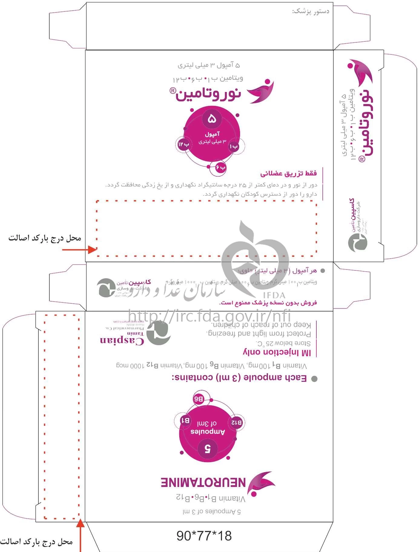 نوروتامین تزریقی پرنترال 100 mg/100 mg/1000 ug/3mL