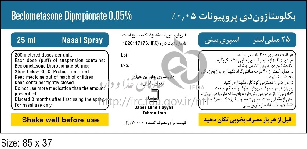 بکلومتازون اسپری اسپری از راه بینی 50 ug/1 {dose} 200PUFF