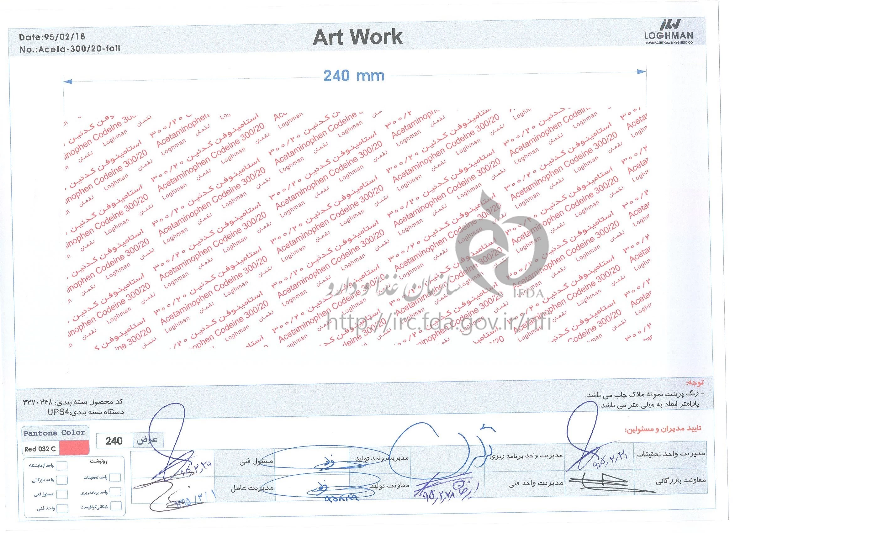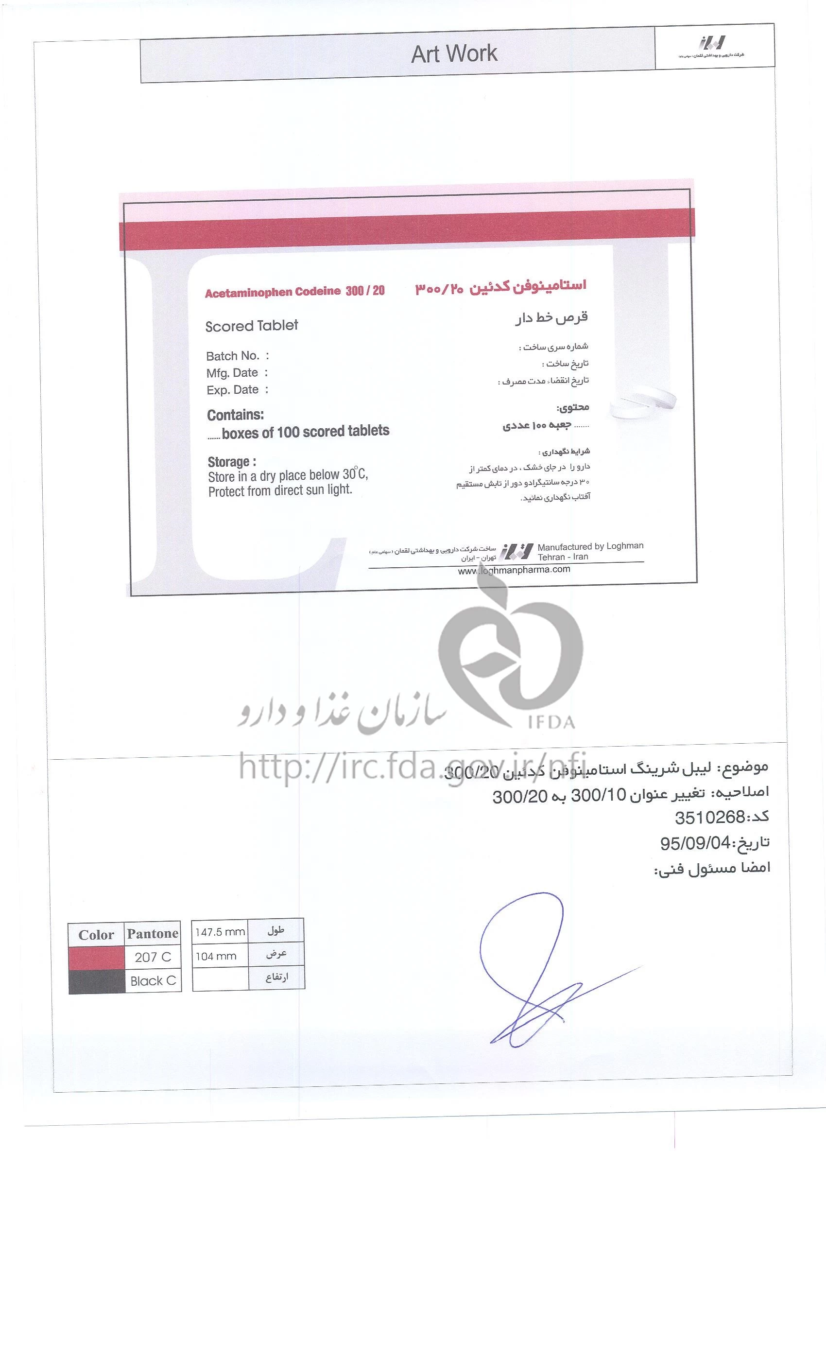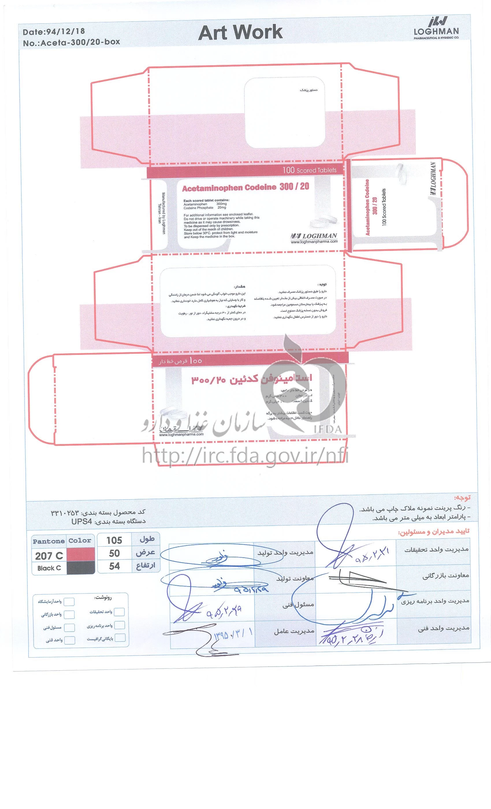 استامینوفن/کدئین قرص خوراکی 300 mg/20 mg