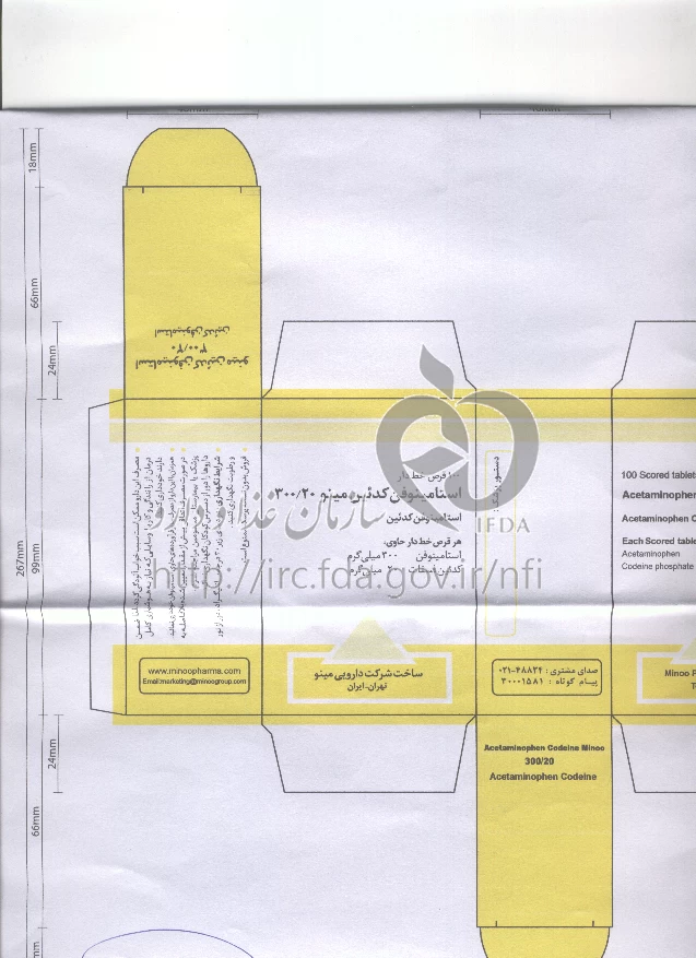 استامینوفن/کدئین مینو قرص خوراکی 300 mg/20 mg