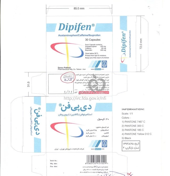 موارد مصرف ، عوارض جانبی ، مصرف بارداری و تداخلات دارویی دی پی فن کپسول خوراکی 325 mg/40 mg/200 mg