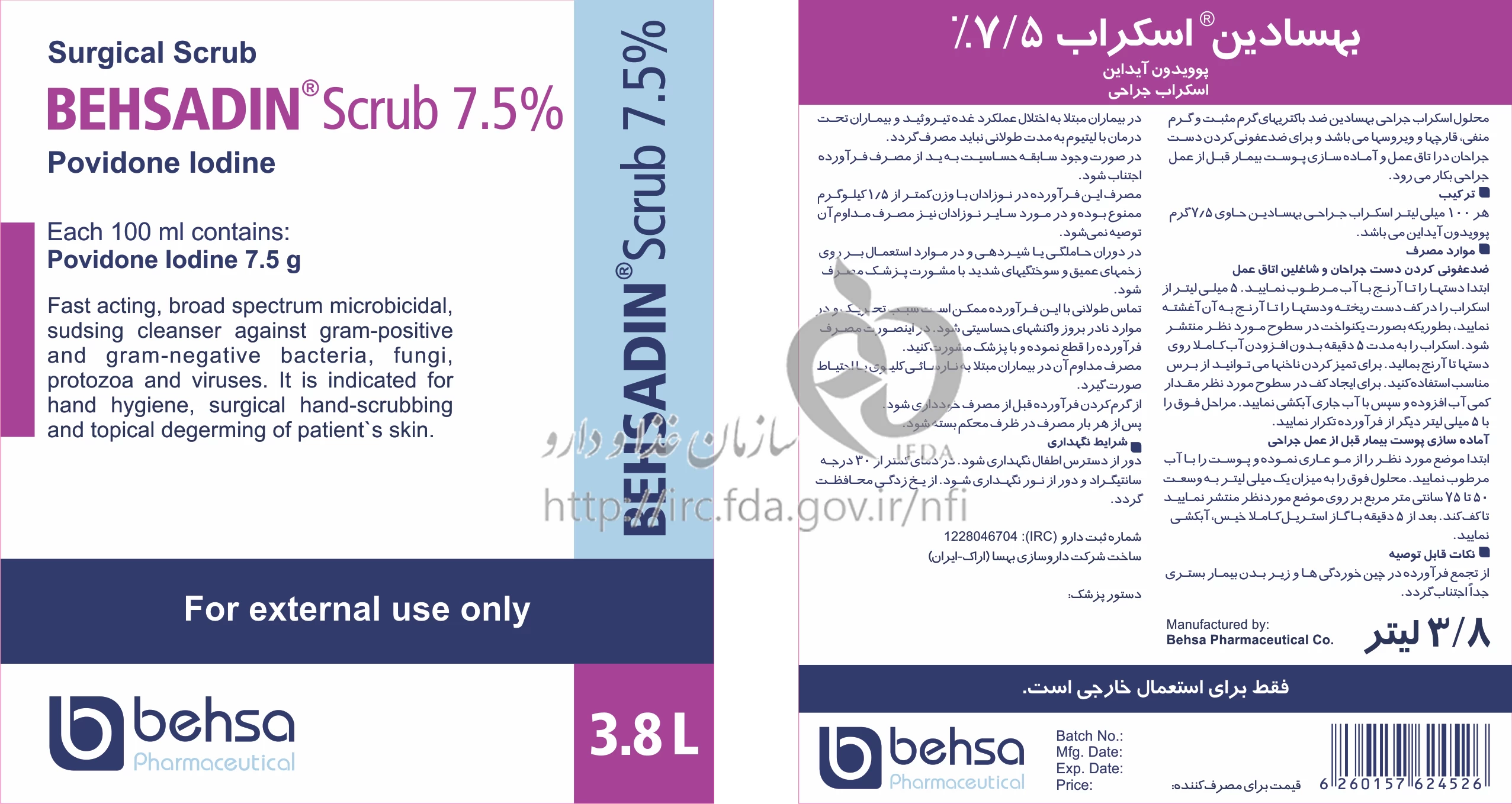 بهسادین محلول موضعی 7.5 % 3.8LITER