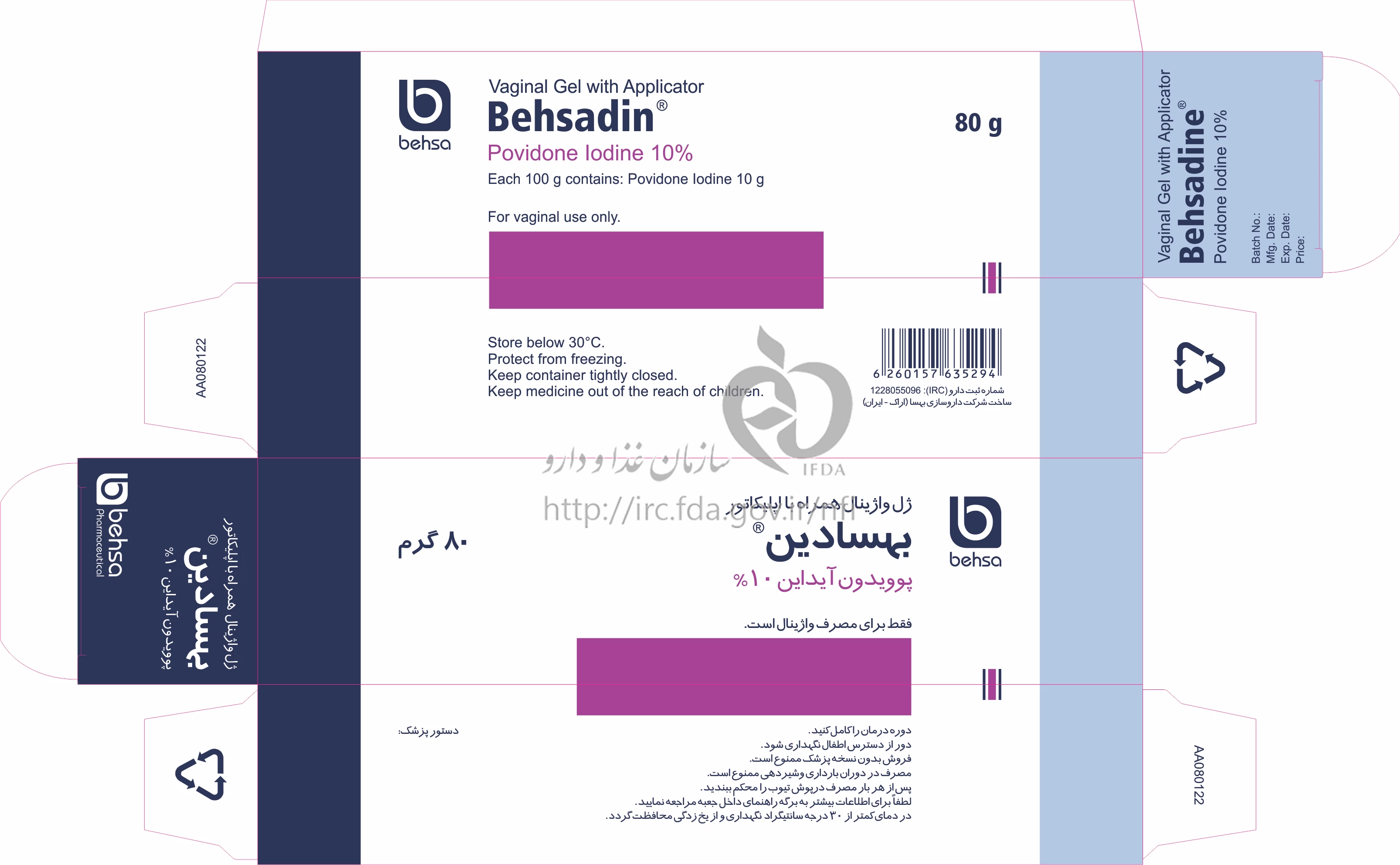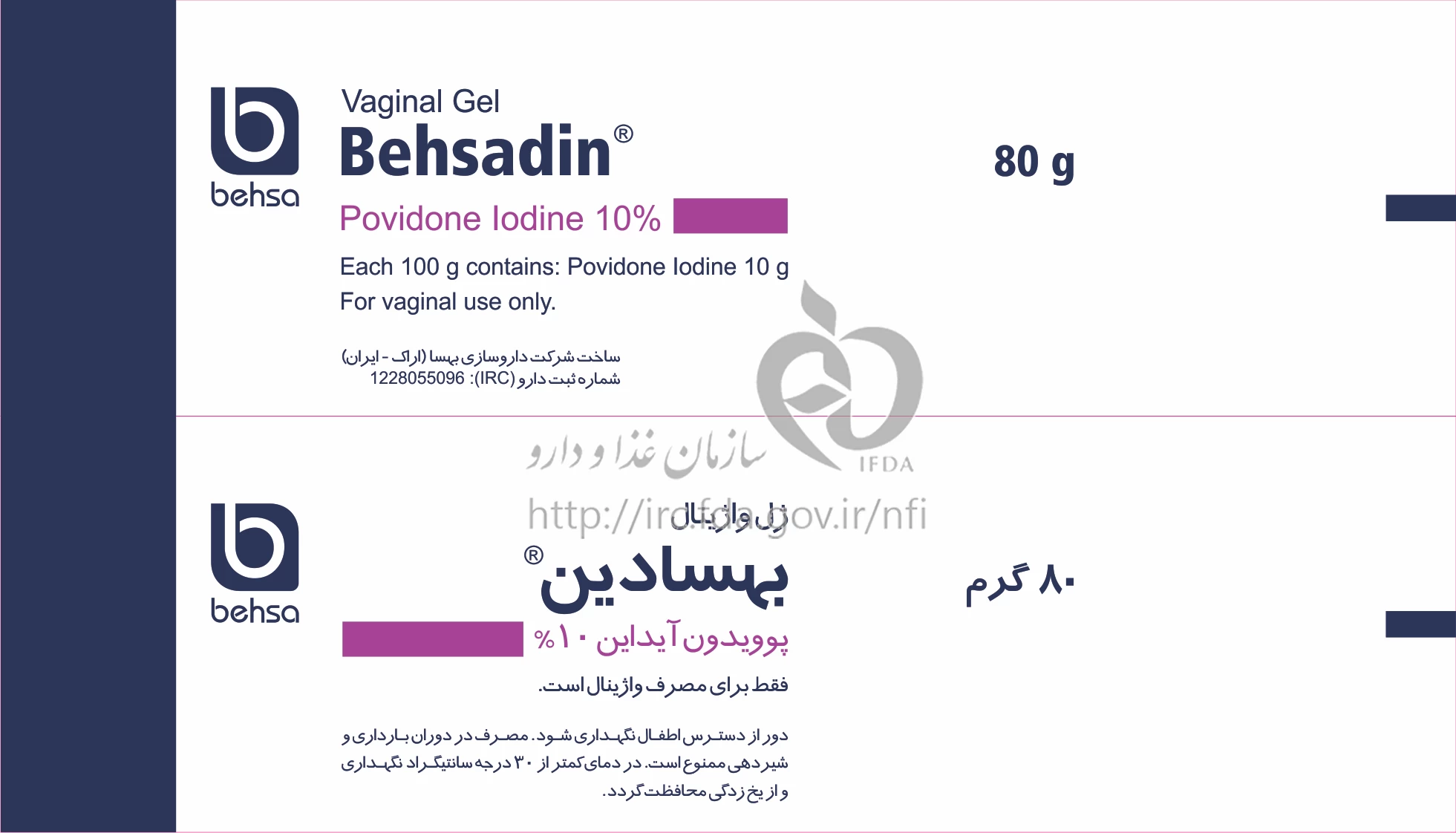 بهسادین ژل واژینال 10 % 80GRAM